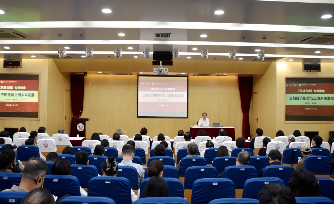 4月19日,为进一步促进党外知识分子拓宽国际视野、提升综合能力,了解国情市情,《统战杏语》讲座邀请上海市政府参事、民建上海市委原专职副主委张兆安作“当前经济形势与上海未来发展”专题辅导,讲座在龙华医院举办。张兆安通过详实的数据和鲜活的案例,深入浅出地带来一场生动、高效、务实的经济分享大课。他从国际视野、国内实际、上海未来发展面临的机遇与挑战等方面,解读了当前经济形势及上海未来发展趋势,对上海推进“三大任务”、强化“四大功能”、建设“五个中心”、发展“五型经济”、构建空间布局等战略任务进行了详细分析。并就如何发展新质生产力,推动中医药高质量发展,提出了“三个寻找”建议,即寻找国家战略中的中医药元素、寻找上海未来发展中的开元集团网站的任务、寻找“优势更优、特色更特、长板更长”。报告思想深刻、内涵丰富、视角新颖、观点独到,对大家从宏观上把握国内外经济发展趋势、深入了解上海未来经济发展规划具有很好的启发和帮助。