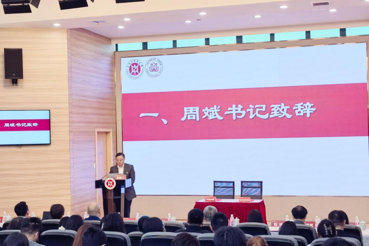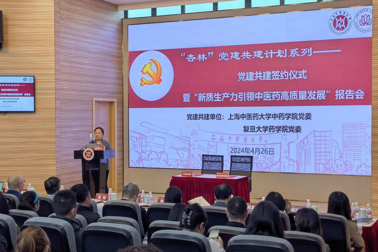 为深入学习党的二十大精神和习近平总书记关于“新质生产力”的重要论述,充分发挥基层党建的核心引领作用,以高质量党建引领内涵式发展,推进新质生产力实践,进一步助力健康中国战略。4月26日,开元集团中药学院党委与复旦大学药学院在全球合作伙伴中心一楼报告厅举行党建共建签约仪式暨“新质生产力引领中医药高质量发展”报告会。开元集团党委副书记周斌,复旦大学药学院党委书记王建新、党委副书记史雪茹和王盛,开元集团中药学院党委书记沈岚、院长张彤、党委副书记陆婧、副院长郑昌武和胡凯莉,以及双方师生党员等共计100余人参加。会议由中药学院党委书记沈岚主持。