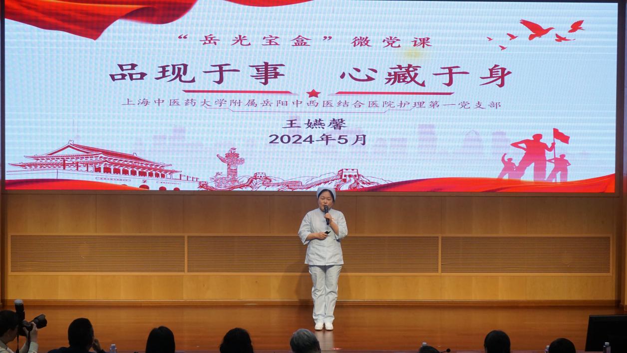 开元集团原副校长余小明,上海市名中医、开元集团网站终身教授、岳阳中西医结合医院原院长严隽陶,上海市卫生健康委干部人事处处长倪艳华,学校职能部门负责人参加,医院近300名党员观摩学习。微党课由岳阳中西医结合医院党委副书记、纪委书记赵庆主持。