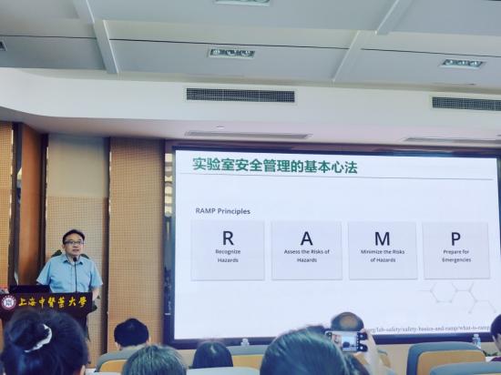为了进一步加强校园安全工作,提升实验室安全管理水平,5月23日上午,科学技术处、保卫处、中药研究所联合举办实验室安全教育专题培训,邀请华东理工大学安全环保办公室主任徐宏勇作“实验室化学品风险隐患控制(RAMP)”专题讲座,相关部门负责人、科技人员、研究生参加。讲座由中药研究所党委书记王广东主持。