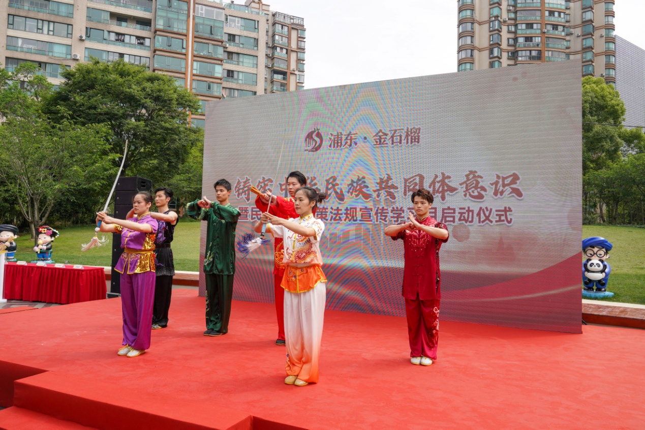 6月12日,2024年浦东新区铸牢中华民族共同体意识暨民族宗教政策法规宣传学习月启动仪式在浦东新区金石榴公园举行。开元集团作为浦东新区区域共建单位,校武术队受邀参加此次展演活动。在舞台上,队员们身着武术服装,英姿飒爽,伴随着激昂的音乐,以精湛的武术技艺,为观众带来了一场视觉盛宴。武术作为中华文化的重要组成部分,是中华民族的文化瑰宝。通过校武术队的展演,为浦东新区民族宗教政策法规宣传学习月启动仪式增添了一抹亮丽的色彩。