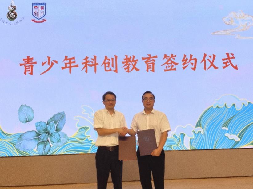 自教育部等十八部门印发《关于加强新时代中小学科学教育工作的意见》一年多以来,全国各地积极探索“用好社会大课堂,为科学教育提质”的有效途径。上海中医药博物馆认真落实文件精神,联合中小学开展诸多有益实践,其申报的“青少年的中医药科创教育机制建设与实践”项目入选2024年度上海市“科技创新行动计划”科普专项。为扩大青少年中医药科创教育的辐射面和影响力,李赣和夏时勇在仪式上代表馆校双方签署青少年科创教育合作协议,今后将共同建设“分阶段有侧重”的科普科创课程、“校内+校外”的实践体系、“科普+科创”的研学模式等,助力培养中医药未来科学家。