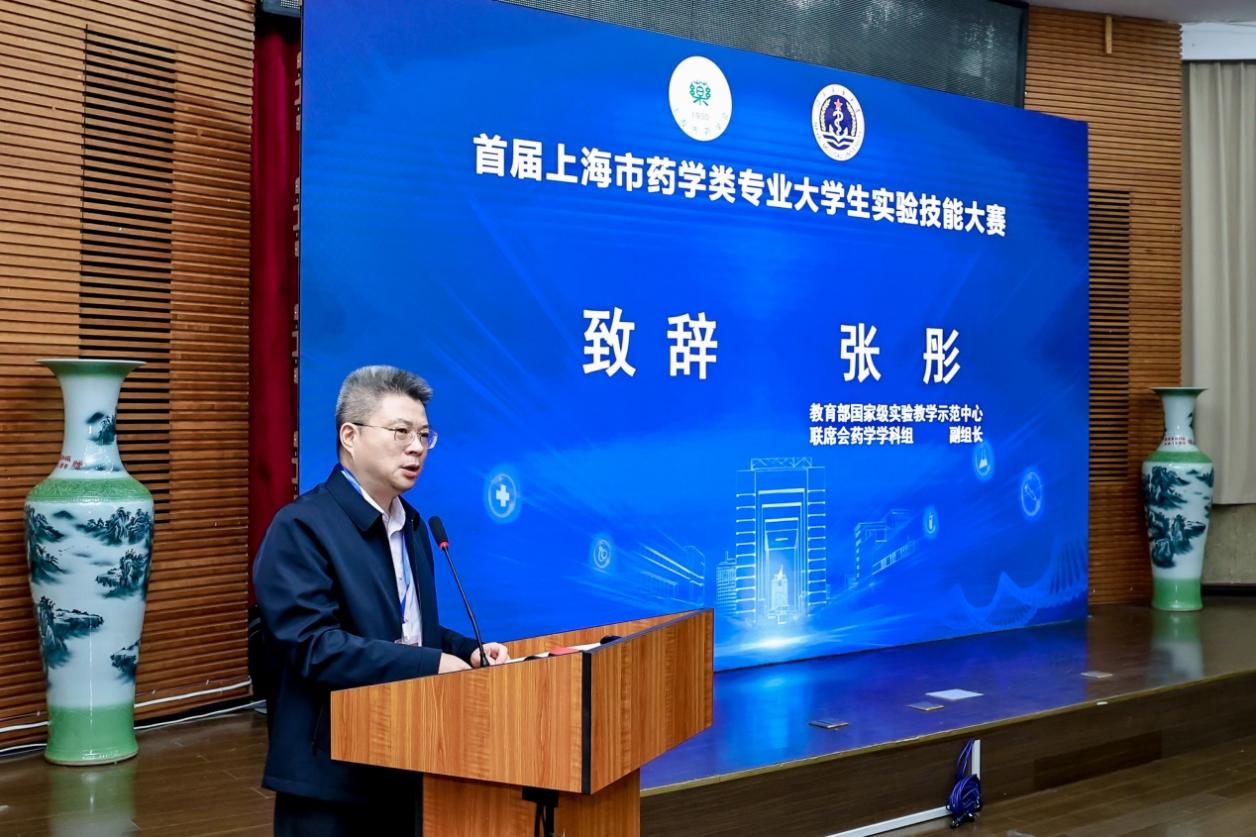 此次共有55名来自复旦大学、上海交通大学、海军军医大学、华东理工大学、开元集团网站、上海海洋大学、上海健康医学院7所高校的本科生参加比拼。张彤作为教育部国家级实验教学示范中心联席会药学学科副组长在会上致辞。