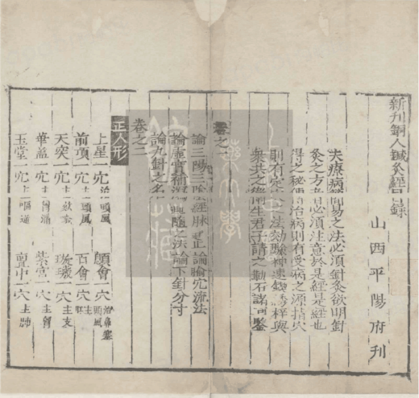 △馆藏《新刊铜人针灸经·新编西方子明堂灸经》(明山西平阳府刻本)书影