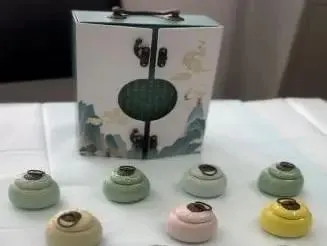 荣获2023“非遗新体验”国潮文创设计大赛中医药赛道最佳作品奖和最具潜力奖的曙光医院“海派夏氏外科箍围药套装盒”在场馆内首次展出。“箍围法”是海派夏氏外科非遗外治法之一。箍围药粉经湿调,可辨证治疗疖肿、痤疮、丹毒等体表感染性、过敏性疾病。“海派夏氏外科箍围药套装盒”分为上下两层,分别内含箍围药粉及调制工具、器皿,并附有通俗易懂的操作文案。产品外观精美,承袭中医古药箱、药罐、文案之古风,可作为百姓日常居家操作夏氏外科非遗技术的常备物品。