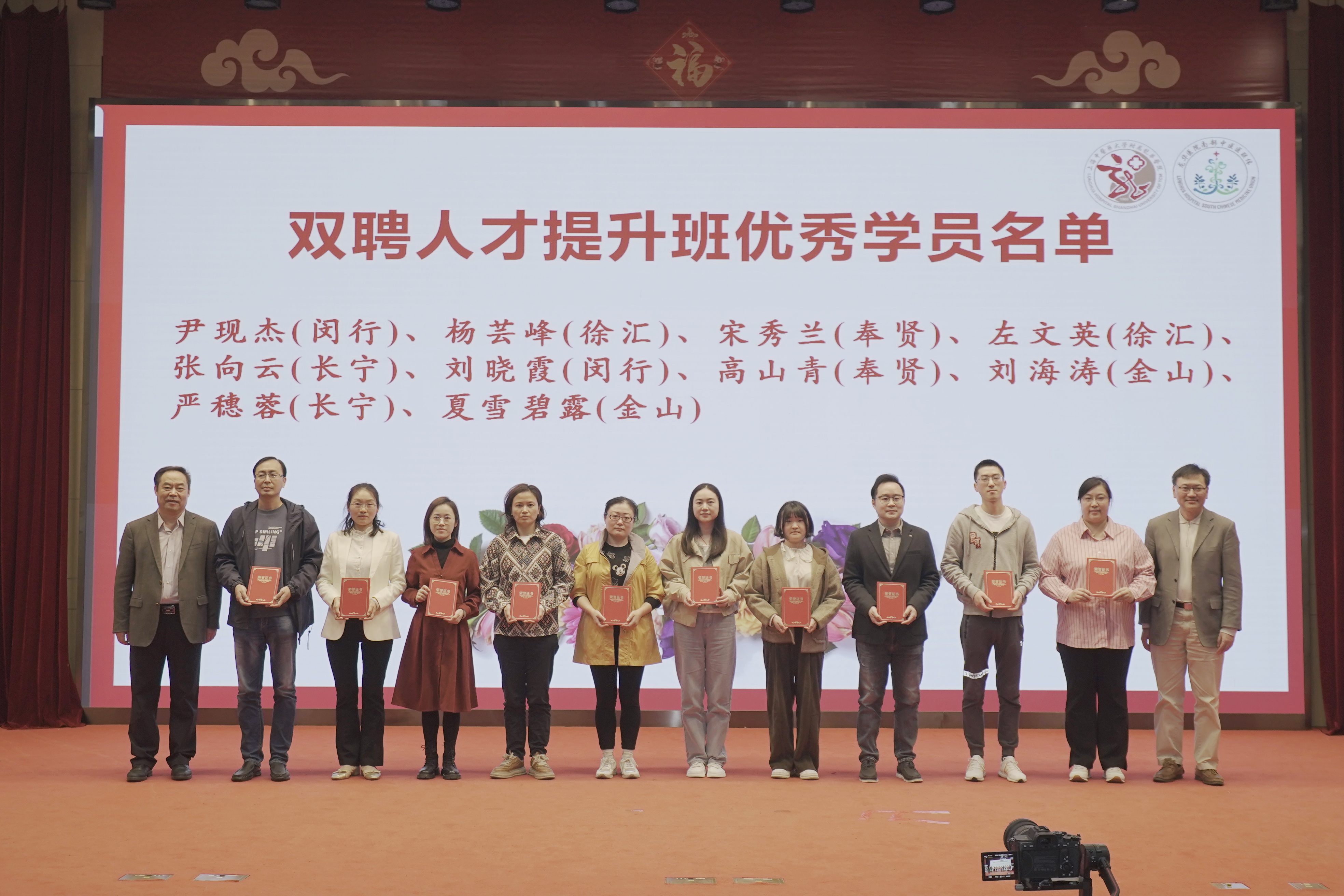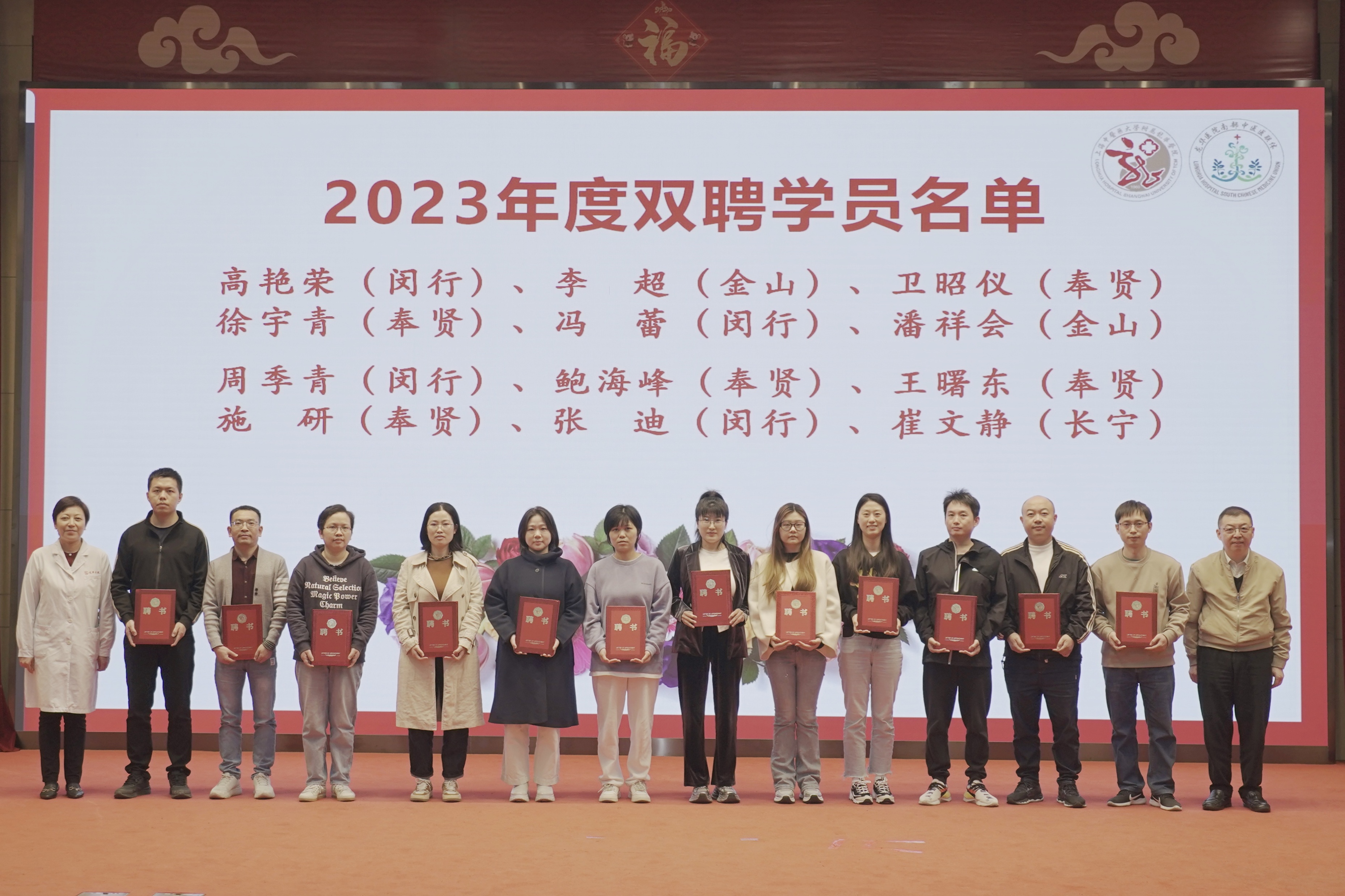 与会领导为各区上海市名中医工作室基层工作站授牌。刘华和陈跃来为基层骨干医师双聘提升项目优秀学员颁发证书。胡鸿毅和李屹为2023年度基层骨干医师双聘人员颁发聘书。