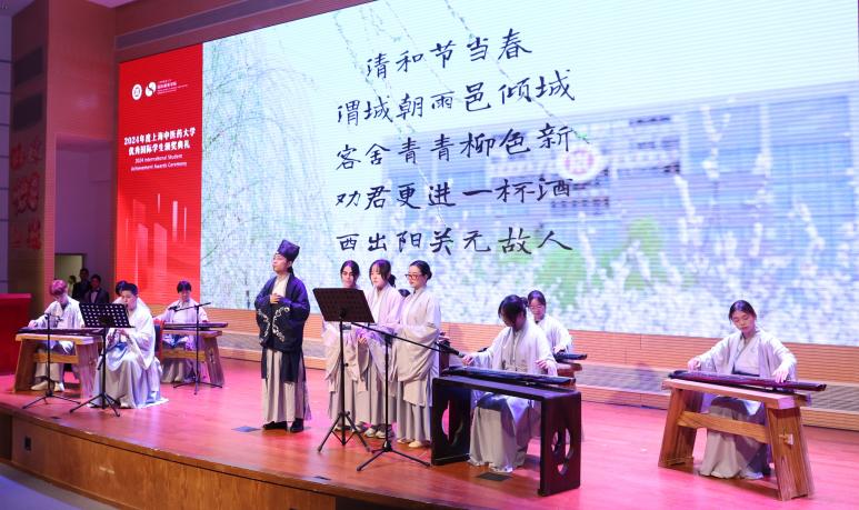 随后,文化表演正式拉开帷幕。武术表演、各国服装秀与汉服秀、“阳关三叠”古琴秀、“我在上中医学汉语”创意弹唱、舞蹈串烧“舞蹈好运”等节目连番上演、精彩纷呈,一展文化风采与学子风貌。