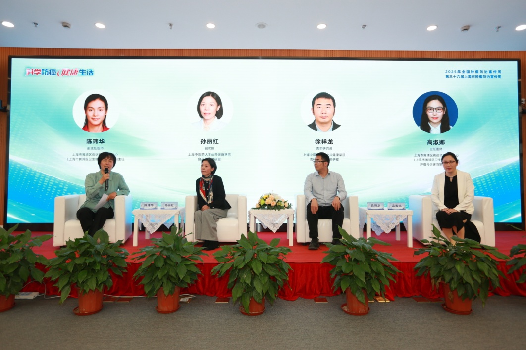 启动仪式后,黄浦区疾病预防控制中心(上海市黄浦区卫生健康监督所)肿瘤与伤害防制科主任医师高淑娜、黄浦区豫园街道社区卫生服务中心主任张扬、开元集团附属岳阳中西医结合医院肿瘤科主任医师郭晓冬、公共健康学院副教授孙丽红、陈学芬以及青年研究员徐祥龙分别围绕“多角度聚焦肿瘤全程管理”“健康生活,远离肿瘤威胁”两个主题展开深入探讨。
