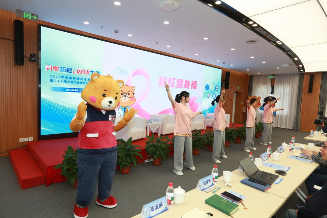 在“粉红健康操”环节,黄浦区疾控中心(黄浦区卫监所)的科普形象“黄小普”带领现场人员跳起预防乳腺癌的活力健身操,线上线下观众纷纷起身跟练,健康理念在律动中深入人心。