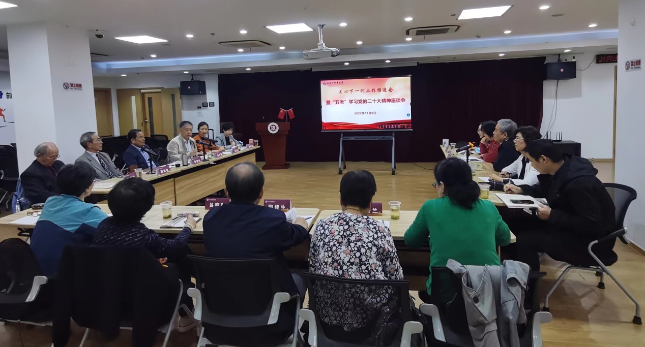 会上首先开展“五老”学习党的二十大精神座谈交流,张建中谈到,党的二十大报告中习近平总书记勉励广大青年要坚定不移听党话、跟党走,怀抱梦想又脚踏实地,敢想敢为又善作善成,立志做有理想、敢担当、能吃苦、肯奋斗的新时代好青年,让青春在全面建设社会主义现代化国家的火热实践中绽放绚丽之花。广大“五老”要遵循党的二十大报告中关于青年工作的重要讲话,做青年朋友的知心人、热心人和引路人,为培养社会主义建设者和接班人作出贡献。中药学院关工委副主任陶建生结合学习党的二十大精神,回顾了习近平总书记十八大以来对教育教学工作的关爱和支持,作为退休教授,表示肩负着把中医人培养好的责任,中药学院关工委分会牢记“三个务必”的要求,传承红色血脉,以事事放心不下的使命感,培养好中医药事业的接班人。龙华医院关工委副主任江启中谈到,医院关工委认真贯彻党的二十大精神,紧密围绕中心工作,注重青年医师和青年学生的培养,将培养工作渗透到日常工作中去,发挥上海教育系统关工委“刘嘉湘工作室”作用,持续推进“岐黄名家说”品牌建设,做好中医药人才的薪火传承。护理学院关工委副主任徐德贤谈到,自己入党后经历了十次党代会。江山就是人民,人民就是江山。党的二十大报告中“人民”二字格外鲜明醒目,作为老党员非常振奋和自豪。他表示只要身体许可,会持续做好关心下一代工作。
