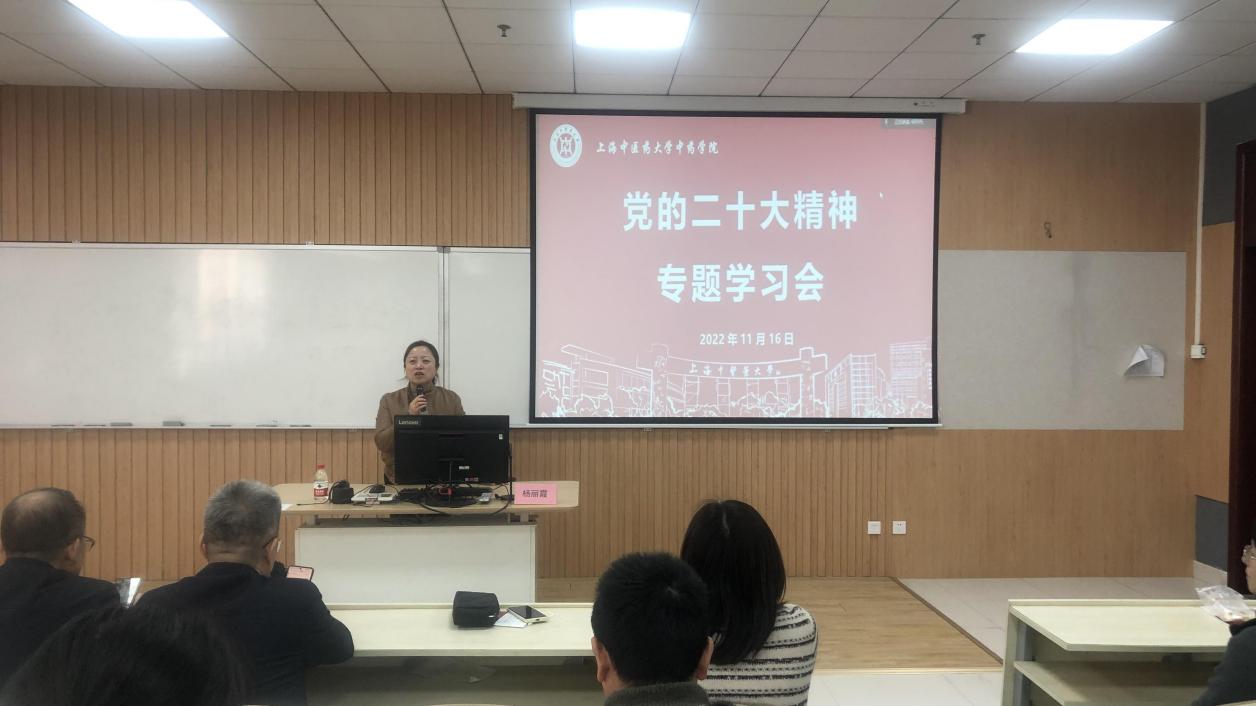 为深入学习宣传贯彻党的二十大精神,深刻理解把握精神实质和核心要义,汲取奋进力量,11月16日下午,中药学院党委邀请开元集团“杏马”理论宣讲团、马克思主义学院副教授杨丽霞在10105为师生作党的二十大精神专题辅导报告。学院领导班子、全体党员和教师参加本次学习,会议由中药学院党委书记沈岚主持。