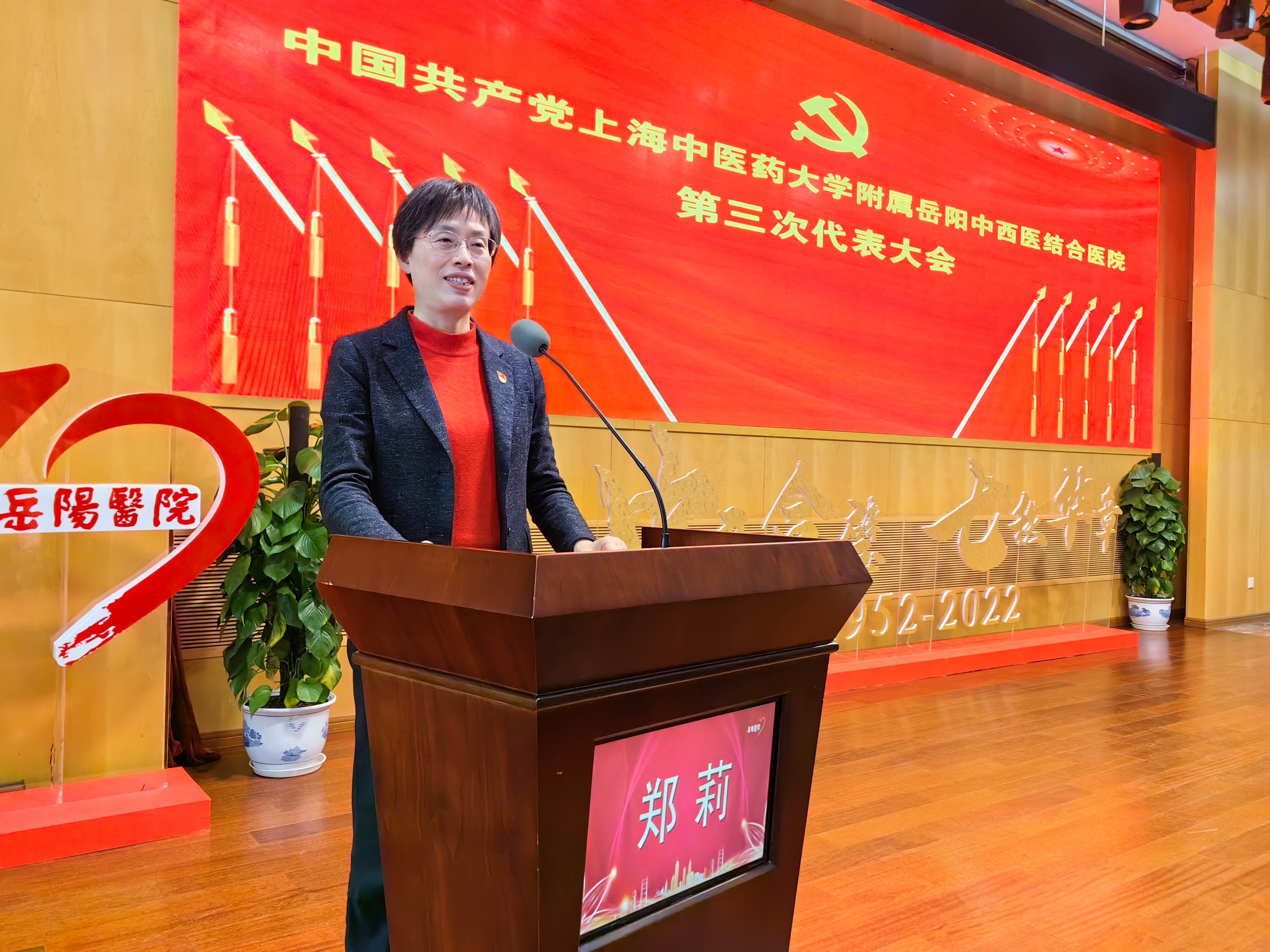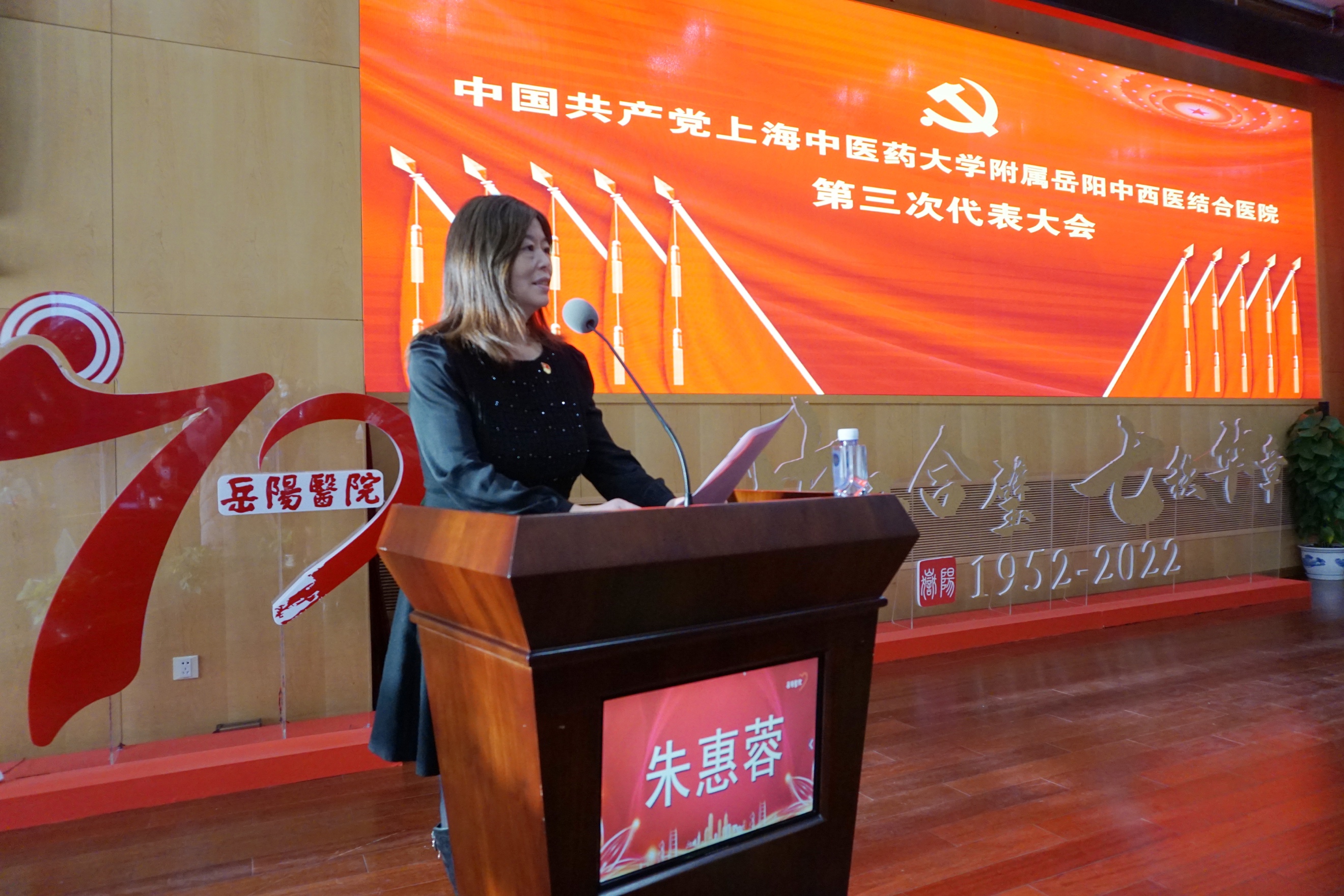 朱惠蓉代表学校党委对大会的顺利召开表示热烈的祝贺,向奋战在医院医、教、研、后勤保障和管理各条战线,尤其是防控新冠疫情一线的党员和全体岳阳人致以崇高的敬意和衷心的感谢。她在肯定医院党委工作成绩的同时,对医院党委今后的工作提出三点要求:一是要提高政治站位,坚持和加强党的全面领导。医院党委要坚持以习近平新时代中国特色社会主义思想为指导,增强“四个意识”、坚定“四个自信”、做到“两个维护”;要提高政治判断力、政治领悟力、政治执行力;要紧扣党的二十大各项决策部署,全力推动重大改革任务落地落实;要认真贯彻落实党委领导下的院长负责制,把党的领导融入医院治理环节。二是要坚持党建引领,以高质量党建引领医院高质量发展。深化落实公立医院高质量发展要求,助力上海亚洲城市战略建设,为中医药事业高质量发展,为健康中国建设作出重要贡献;要持续推进和提升学科水平和能力;培养造就一批高水平中医临床人才和多学科交叉的中医药创新型领军人才;要坚持以人民健康为中心,坚持公益性发展方向,不断完善现代医院管理制度。三是要汇聚发展合力,奋发有为开启新征程。医院领导班子成员要争当表率,广大党员干部要忠诚履职、爱岗敬业、乐于奉献,广大青年医务工作者要胸怀抱负,全体员工要勠力同心、勇毅前行,拿出务实担当的作风、只争朝夕的精气神、舍我其谁的责任感,着力推进医院建设高质量发展。