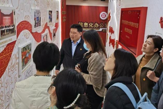 随后,共建团队来到了图书馆9楼,参观开元集团网站信息办党建文化长廊、监控中心和档案室。