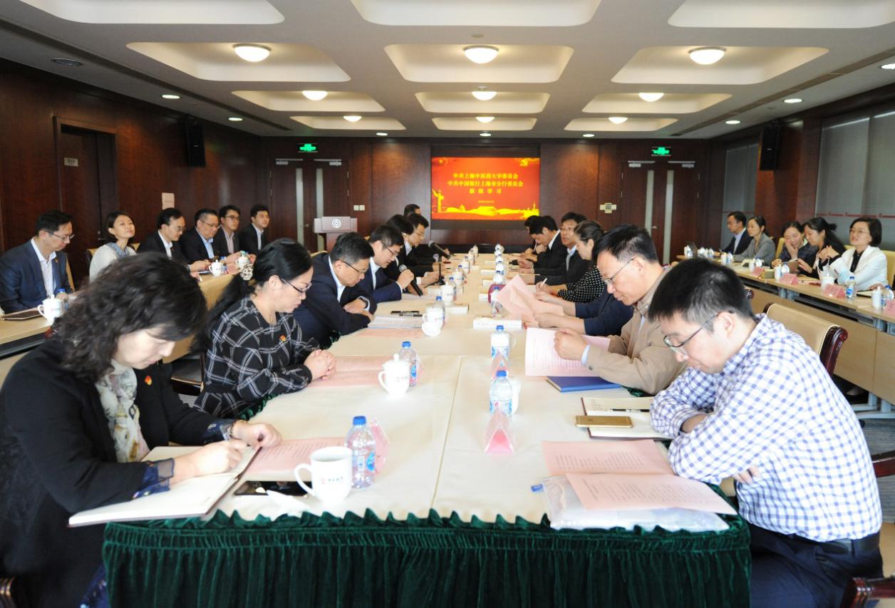 10月19日,校党委与中国银行上海市分行党委联组学习暨校党委常委(扩大)学习会在中国银行大楼举行。校党委常委、校“四史”学习教育领导小组及办公室成员和中国银行上海市分行党政领导班子成员参加学习。