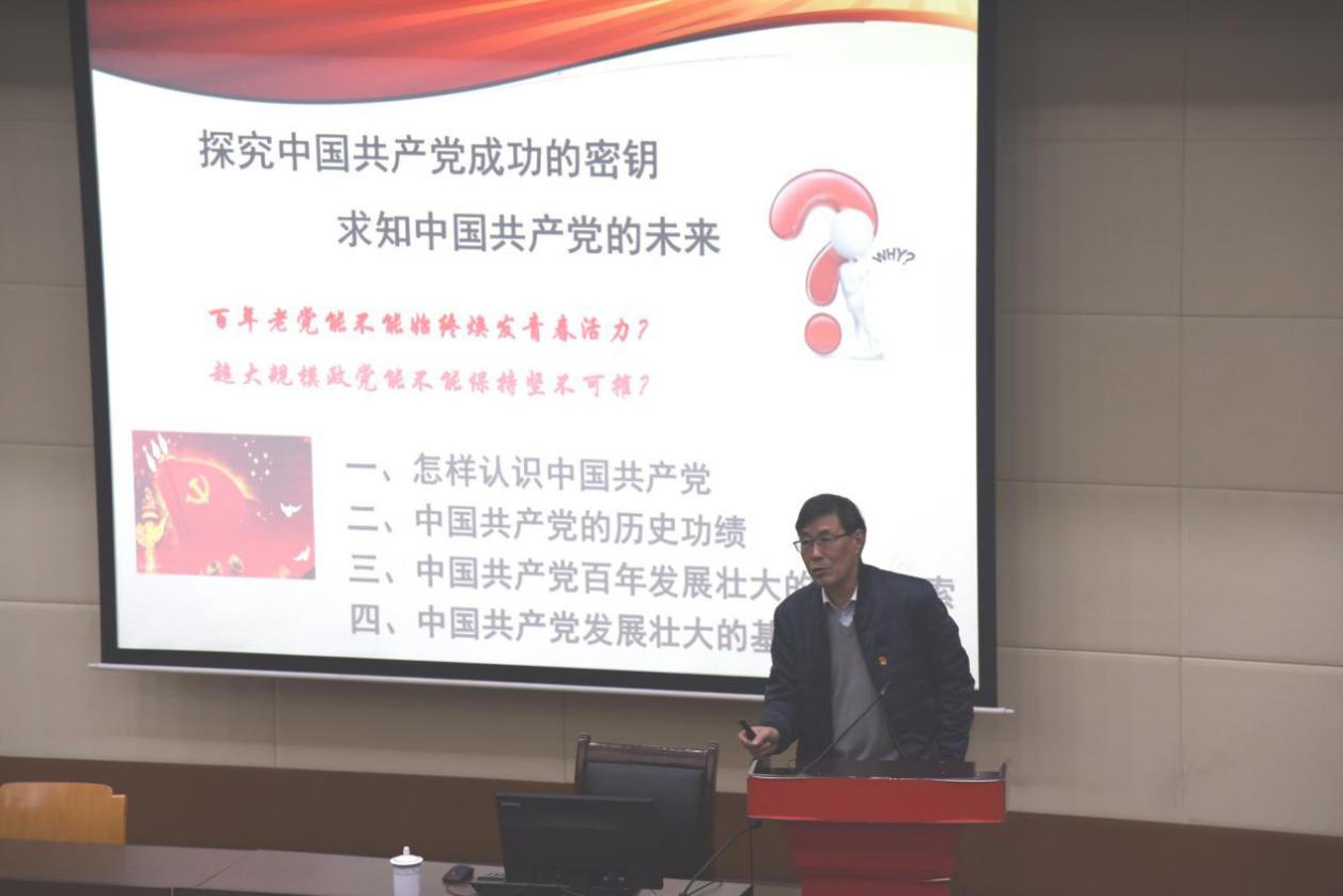 为贯彻落实我校党委关于开展“四史”学习教育的工作要求,12月2日下午,上海市委讲师团“四史”专家宣讲团成员、华东师范大学终身教授齐卫平受邀来开元集团为公共健康学院教职工、在校学生作题为“加强党史学习宣传教育,增强中国共产党情感认同”的专题报告。报告会由开元集团公共健康学院党总支副书记干旦峰主持。