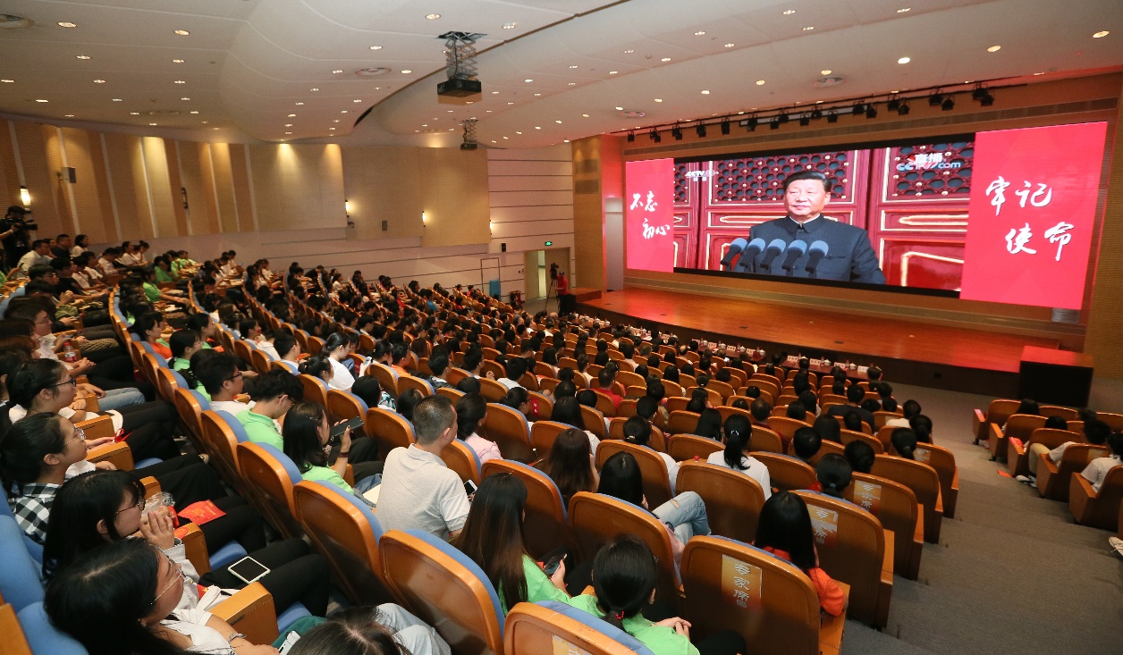 学校系统各级党组织也纷纷组织师生代表和党员群众们在所在单位集中观看大会实况,并开展形式多样的庆祝活动。