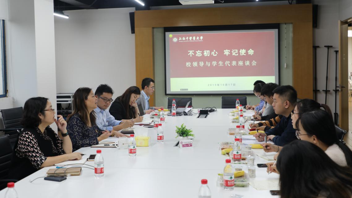10月17日下午,“不忘初心、牢记使命”主题教育校领导与学生代表交流座谈会在学生事务与发展中心310会议室召开。校党委副书记、副校长朱惠蓉,学工部副部长徐丽英、王鑫,校团委副书记吴平、万婕及来自各二级学院的20名学生代表参加座谈。
