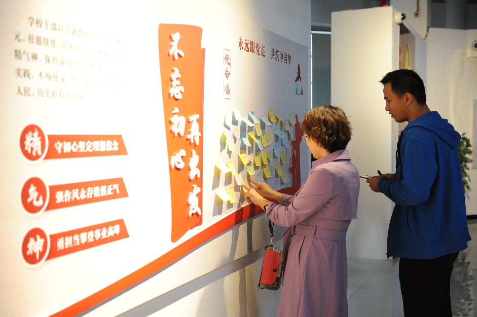 展览还特别准备了一面使命墙,激励参观者永远跟党走、共筑中国梦。首展当日,参观者纷纷通过纸和笔在墙上留下自己观展或关于主题教育的所思所想所悟。