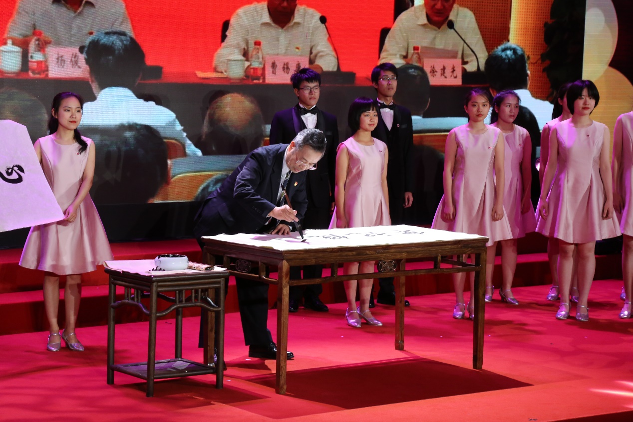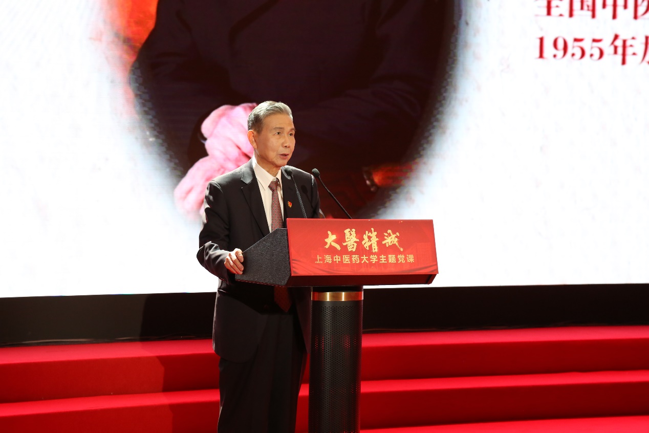 上海市名中医、学校终身教授王庆其现场为党课题词“不忘初心、牢记使命”