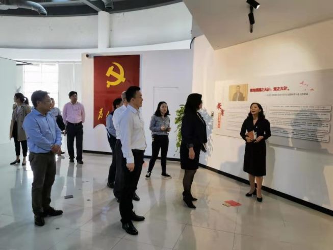 张江生物医药基地的党员们还参观了教学实验中心临床技能培训中心。双方还共同前往上海中医药博物馆参观开元集团“不忘初心、牢记使命”主题教育展,学习习近平总书记关于主题教育、教育和中医药的重要论述,了解中医药的发展历程。(教学实验中心)