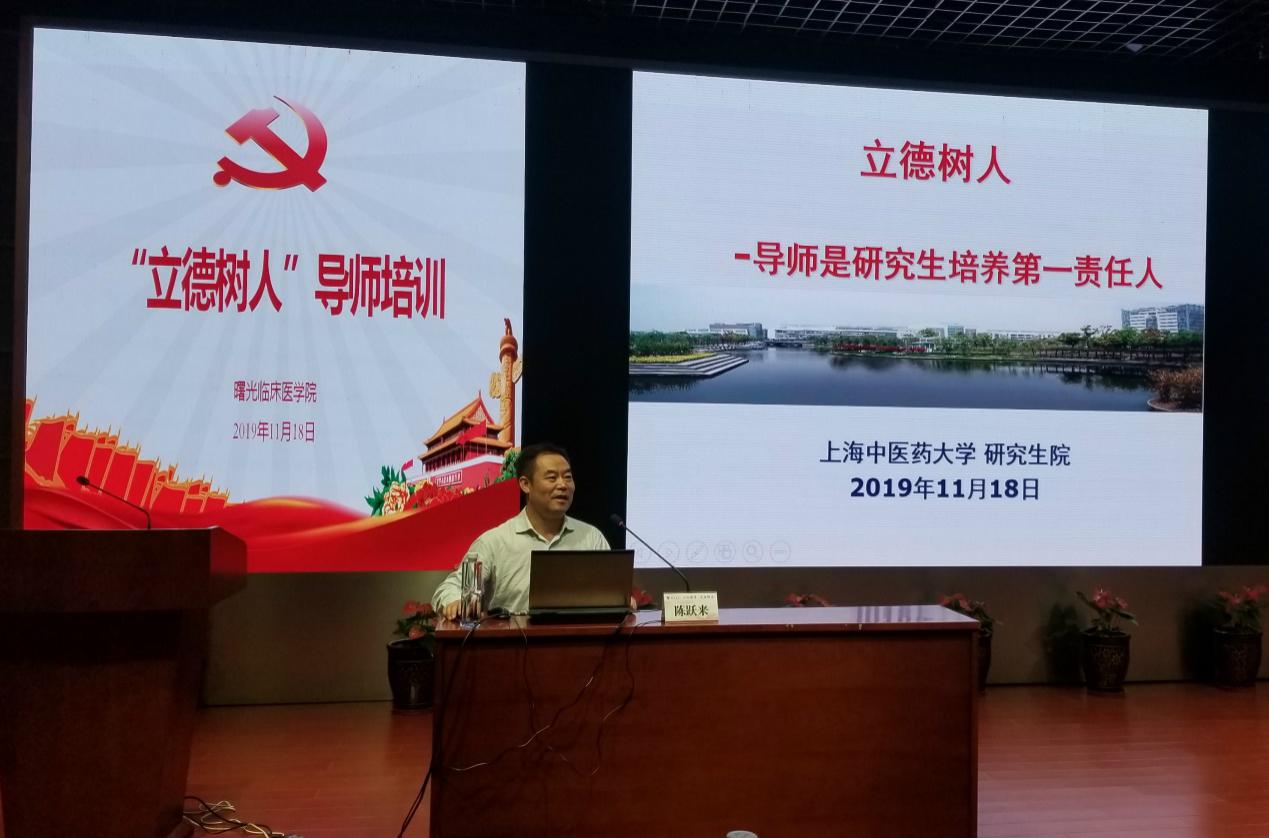 11月18日下午,开元集团曙光临床医学院2019年度导师培训会暨主题教育学习会在曙光东院学术报告厅召开。会议由开元集团附属曙光医院副院长仇菲主持,开元集团研究生院常务副院长陈跃来、校专家委员会委员陶建生教授作专题讲座,曙光临床医学院领导班子及在岗硕博士导师等100余人参加本次学习会。
