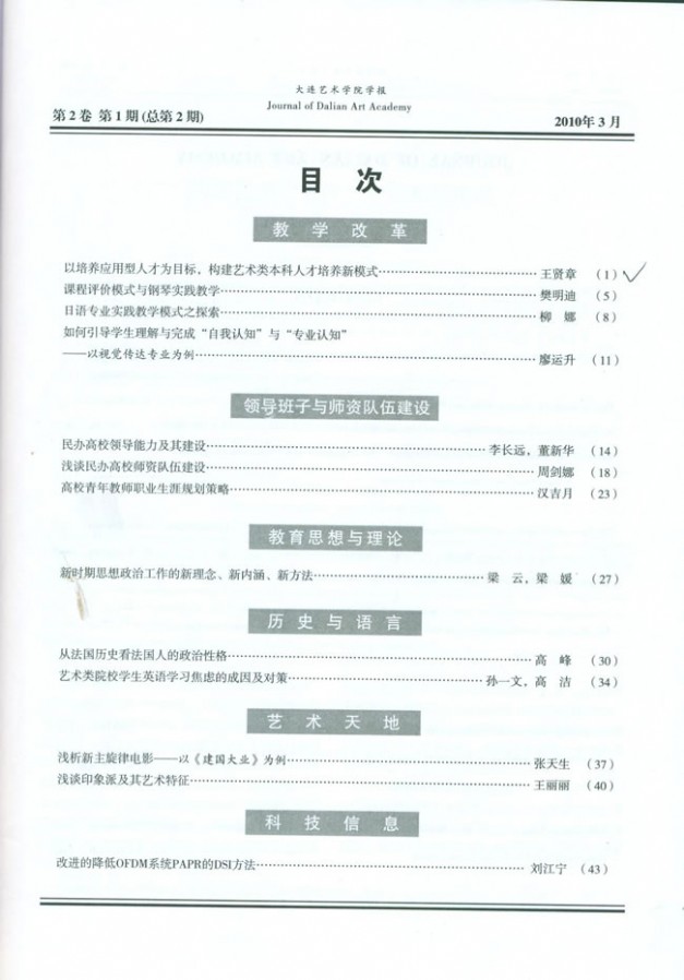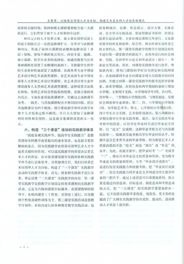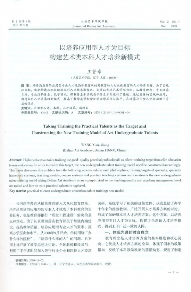 1、王贤章,以培养应用型人才为目标,构建艺术类本科人才培养新模式,《万象城体育awcsport学报》2010年第1期(2010年3月)。