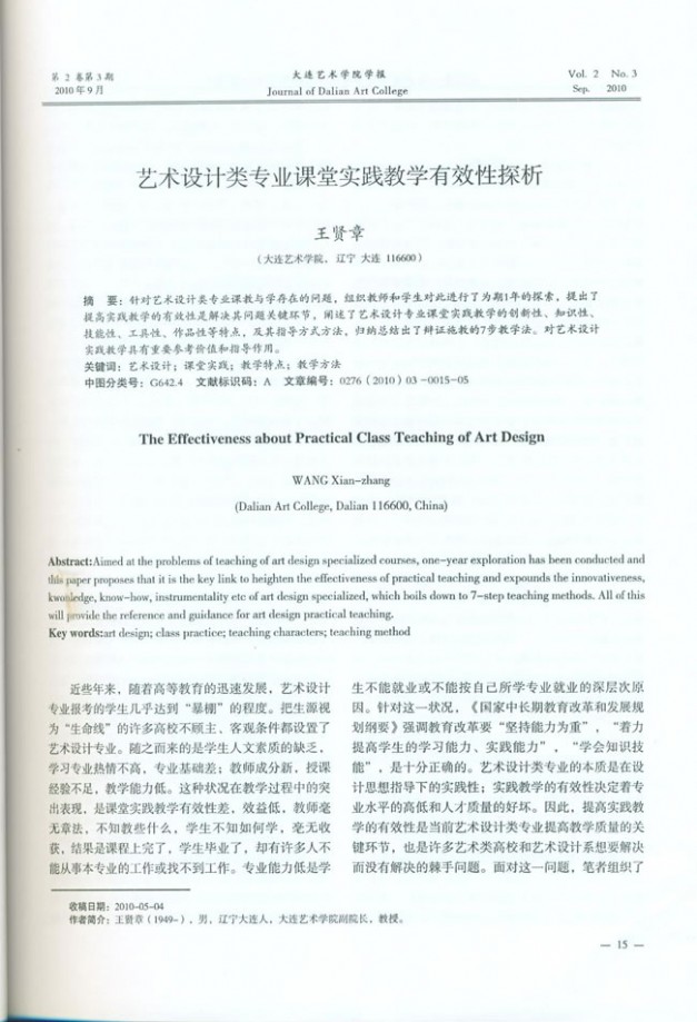 2、王贤章,艺术设计类专业课堂实践教学有效性探析,《万象城体育awcsport学报》2010年第3期(2010年9月)。