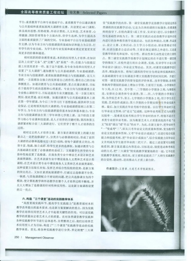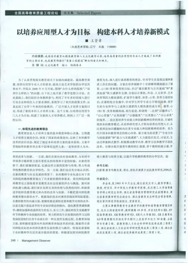 5、王贤章,以培养应用型人才为目标 构建本科人才培养新模式,《管理观察》,2009年。