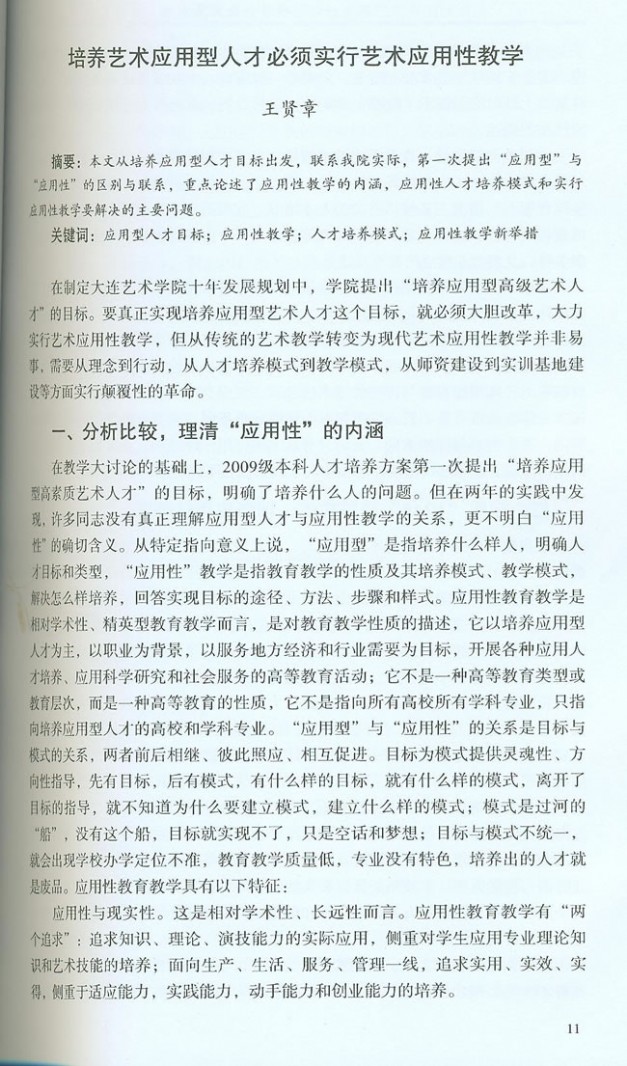 1、王贤章,以培养应用型人才为目标,构建艺术类本科人才培养新模式,《万象城体育awcsport学报》2010年第1期(2010年3月)。