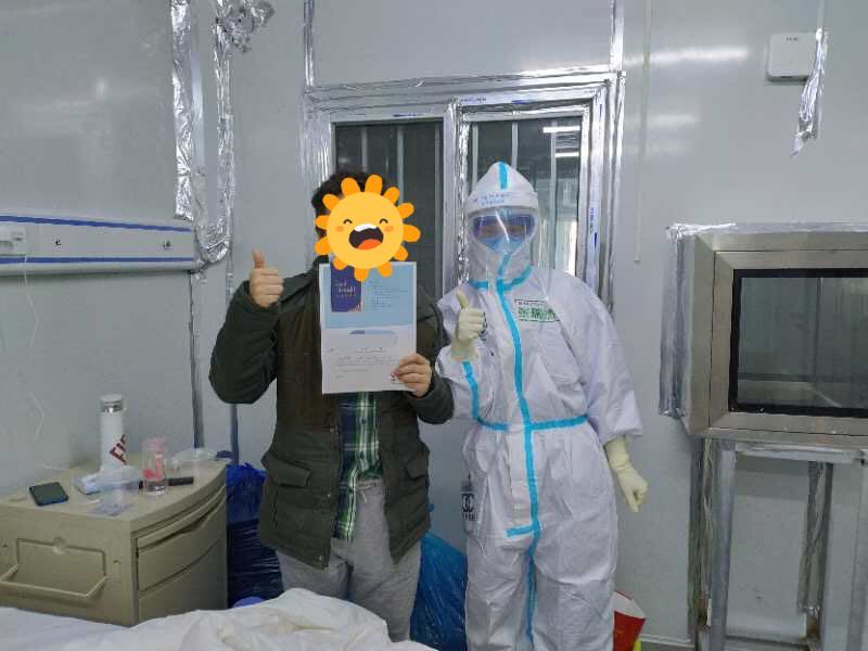 病人出院当天会收到一张特殊的出院证明,队员们称它为“英雄帖”:××床,恭喜您打败病毒,顺利出院,这是雷神山为您颁发的英雄帖,请收好!