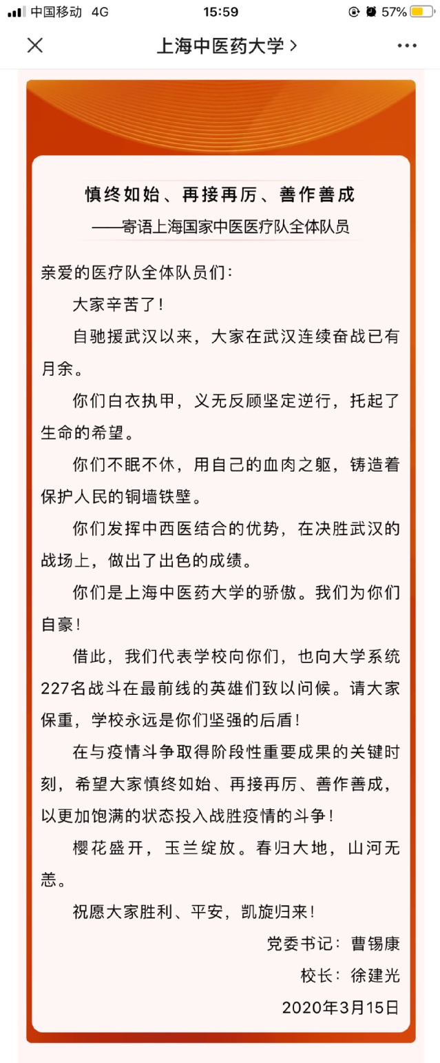 寄语上海国家中医医疗队全体队员