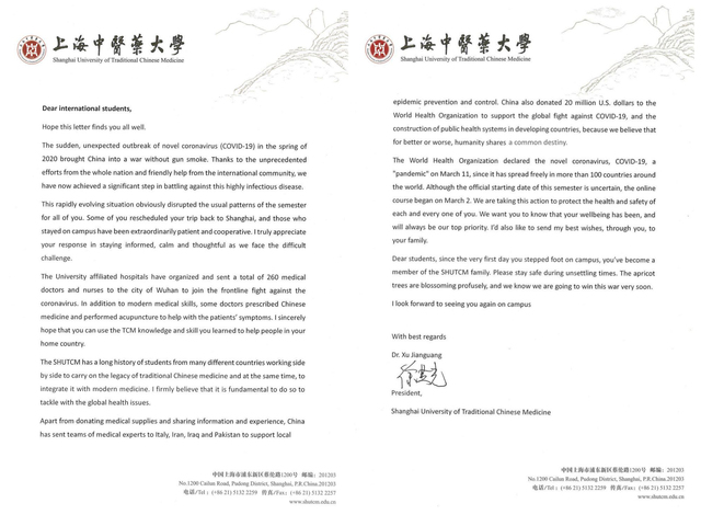 校长徐建光致信开元集团国际学生
