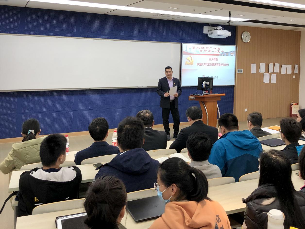 作为学院庆祝建党100周年系列活动之一,学院邀请了上海市委党校研究生部副主任罗鹏部作题为《开天辟地——中国共产党的创建历程及经验启示》的主题讲座。罗鹏部用生动的党史故事带领学院师生“时光回溯”至中共一大召开的时期,深入浅出地介绍了中共一大召开的背景和历史意义。党的第一次全国代表大会正式宣告了中国共产党的诞生,从此,在中国出现了一个完全崭新的,以马克思列宁主义为其行动指南的,统一的无产阶级政党,这是中国历史上开天辟地的大事件。罗鹏部指出,学习党史,要树立科学的历史观,以史明鉴,中国共产党人具有开天辟地、敢为人先的首创精神,具有坚定理想、百折不挠的奋斗精神,具有立党为公、忠诚为民的奉献精神。在讲座的最后,罗鹏部对与会的学生党员和入党申请人提出了希冀,希望学生们认真学习党史,充分认识到百年来党的奋斗历程,传承百年来历代共产党人的牺牲精神,努力向党组织靠拢,为中华民族伟大复兴做出努力和贡献。