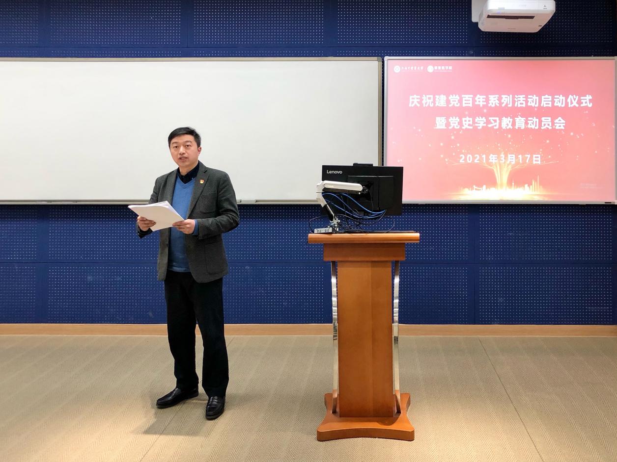 向延卫传达了党中央、上海市委、教育部、市教卫工作党委和校党委党史学习教育动员大会精神,紧密结合学院实际,提出了康复医学院庆祝建党100周年系列活动方案。向延卫提出,本次迎接建党百年系列活动以党史学习教育为开端,学院党总支重点推进专题学习、宣传教育、育人实践、服务社会、召开专题组织生活会五方面工作,凸显充分利用上海作为中国共产党诞生地的独特红色资源、突出康复治疗学科领域两个主要特点。
