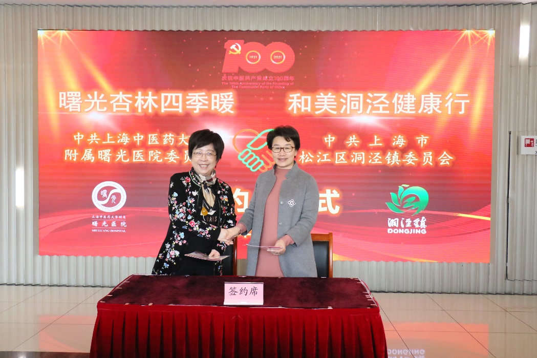 3月25日上午,附属曙光医院党委与松江区洞泾镇党委在洞泾镇文化活动中心,举行以“曙光杏林四季暖 和美洞泾健康行”为主题的党建共建签约仪式。附属曙光医院党委书记马俊坚、党委副书记姚政、党务部门负责人、医生志愿者服务队等与松江区卫生健康委党工委书记桂丽丽、洞泾镇党委书记赵惠瑛、党委副书记、镇长李子及党委委员等出席签约仪式。
