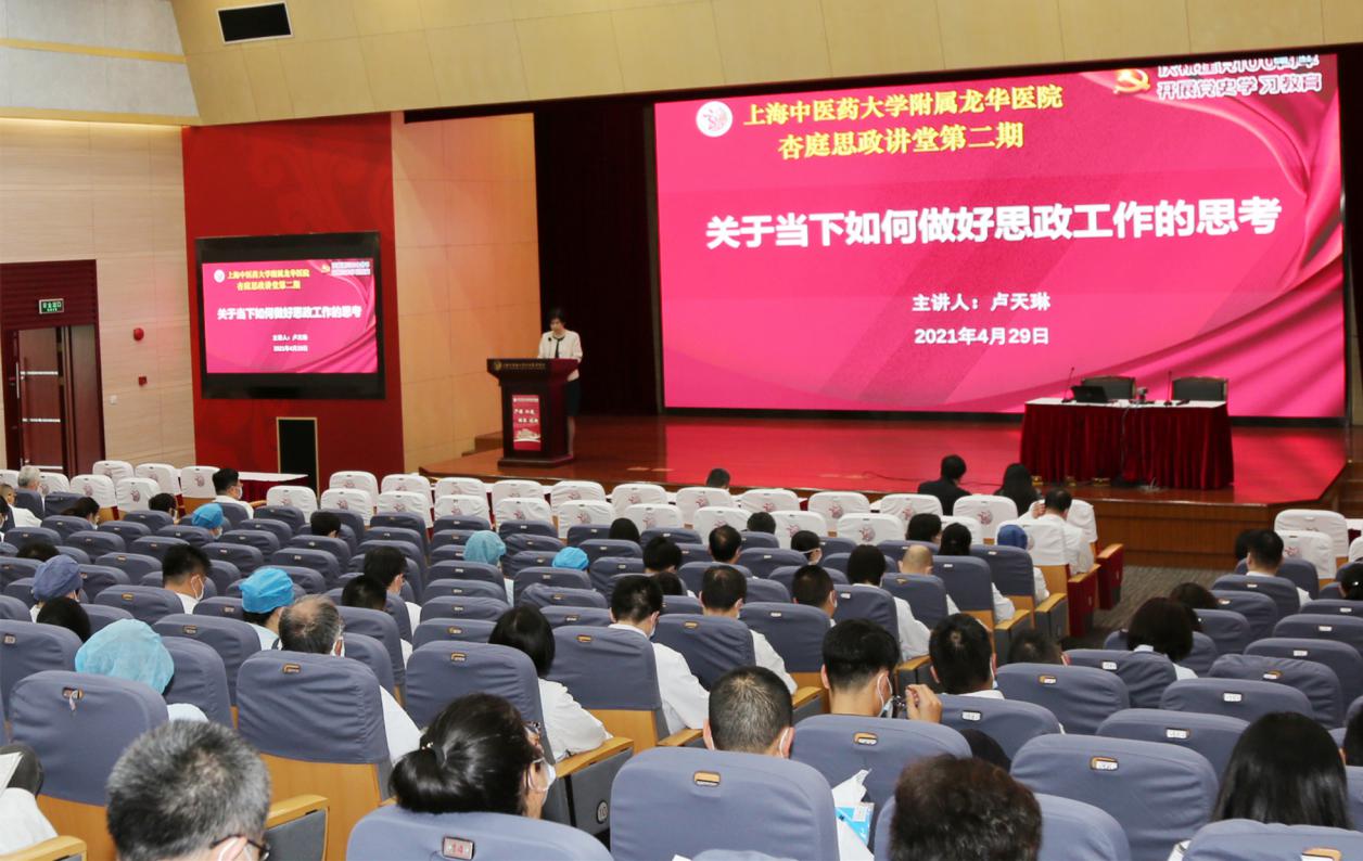 扎实推进党史学习教育,加强医院教师思政工作,提升教师育人工作水平,4月29日下午,附属龙华医院“杏庭思政讲堂”在龙华医院远志楼三楼会议室举行。上海市教育卫生系统思研会常务副秘书长,上海市高校思研会秘书长卢天琳应邀作“关于当下如何做好思政工作的思考”专题讲座。开元集团党委教师工作部副部长刘虹,龙华医院党委委员、中层干部、教研室主任、临床总带教、研究生导师代表、金牌教师、教学主任、各级各类人才培养对象等参加。会议由龙华医院党委副书记、副院长刘萍主持。
