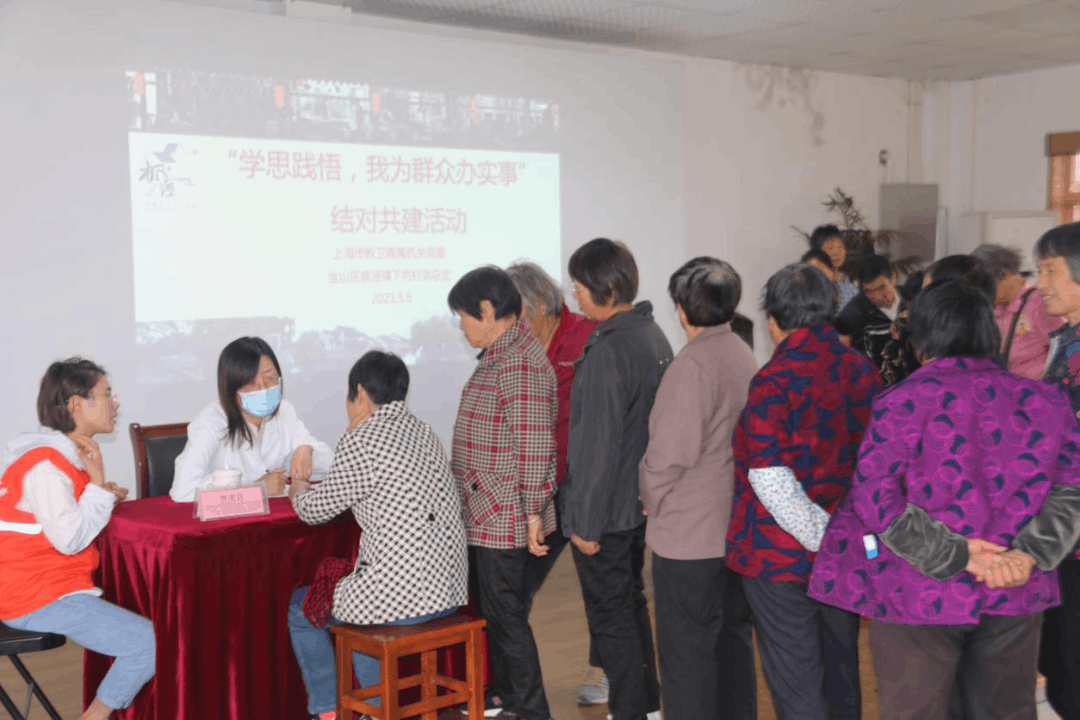 金山区地处上海远郊,优质医疗资源相对不足,村民去市区看专家门诊跑一趟不容易,对优质医疗资源和健康知识非常渴盼。曙光医院党委与市教卫直属机关党委合作,让专家走进金山,开展健康知识讲座与健康咨询,让活动成为了村民喜爱的结对共建品牌项目。