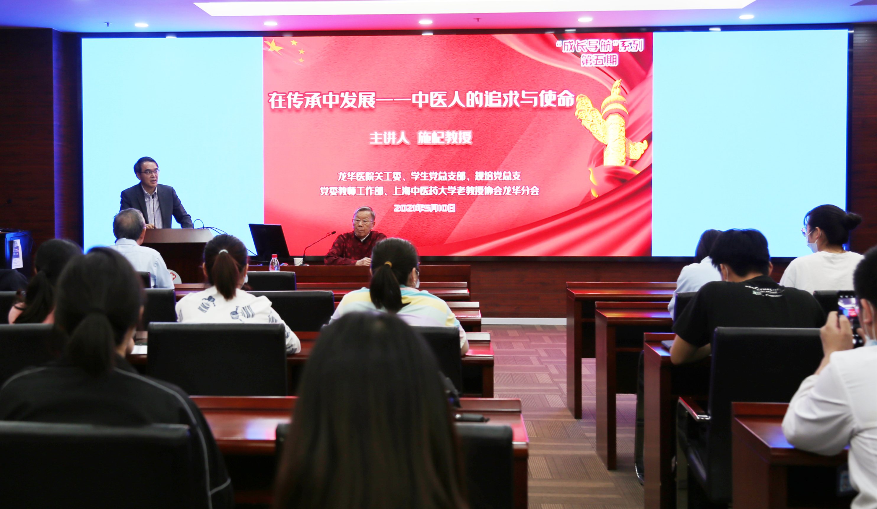 施杞的主题讲座引起听众的强烈反响,纷纷表示在迎接建党100周年的时刻,中医人要以实际行动,推动中医药事业在传承中发展,在发展中传承,为健康中国建设做贡献。(龙华医院)