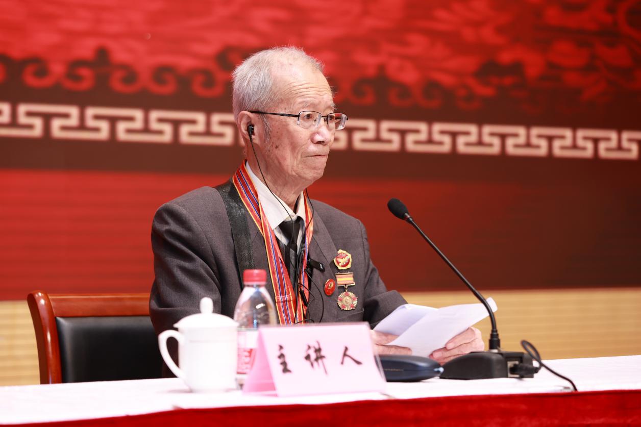 92岁高龄的孙佑民介绍了自己的革命经历。他8岁接受党的教育,当儿童团团长,为抗日队伍站岗放哨,积极宣传党的抗日主张。14岁成长为地方干部,直接从事抗日工作。16岁正式参军,经历了解放战争,参加过淮海战役、渡江战役和解放崇明、舟山群岛的战斗。1952年进入朝鲜东线战场,后按党的指示带领100多名优秀干部战士回国参加人民空军建设。从此开始了长达30多年的飞行战斗生涯,培训带飞新飞行员369名;两次架机飞临天安门,接受毛主席等党和国家领导人的检阅;还创造了空军史上单日飞行强度最高、单次飞行排险次数最多、安全飞行年限最长三项世界纪录。他希望师生们听党话、跟党走,立大志、明大德、成大才、担大任,成为中医药事业的优秀接班人。