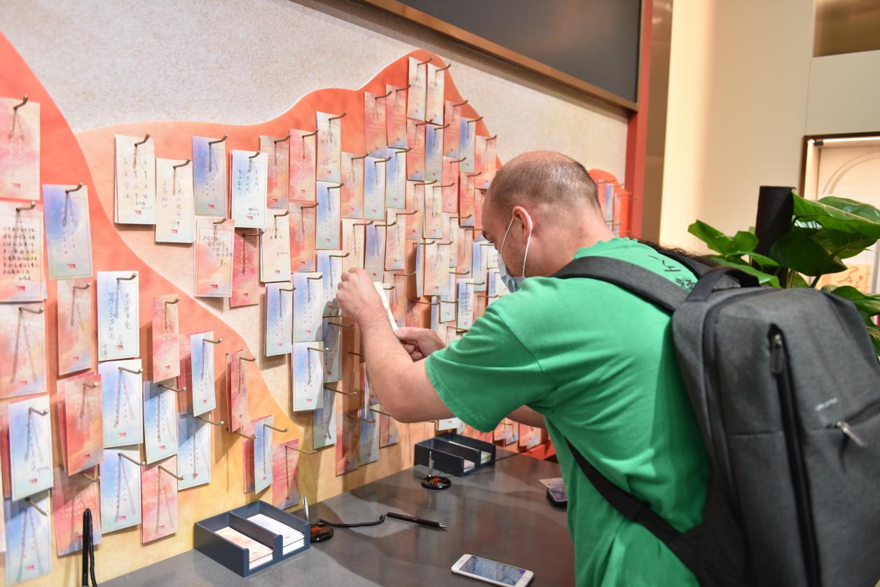 本次有5名国际学生代表自愿随团参观,他们对中国在中国共产党的领导下所取得的成就表示敬佩,并在寄语卡上留言,表达了对中国共产党和中国的良好祝愿。(国际交流与教育党总支)