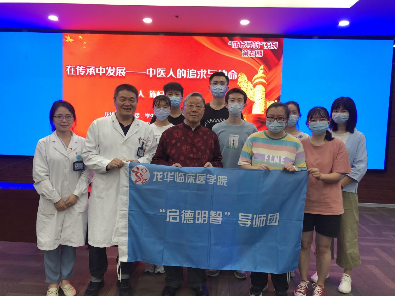 龙华临床医学院“启德明智”导师团团长,上海市名中医施杞教授为毕业生党员和青年教师进行“岐黄名家讲故事”《在传承中发展——中医人的追求与使命》专题讲座,激励学生们为实现“两个一百年”奋斗目标、实现中华民族伟大复兴中国梦的新时代长征路而努力。