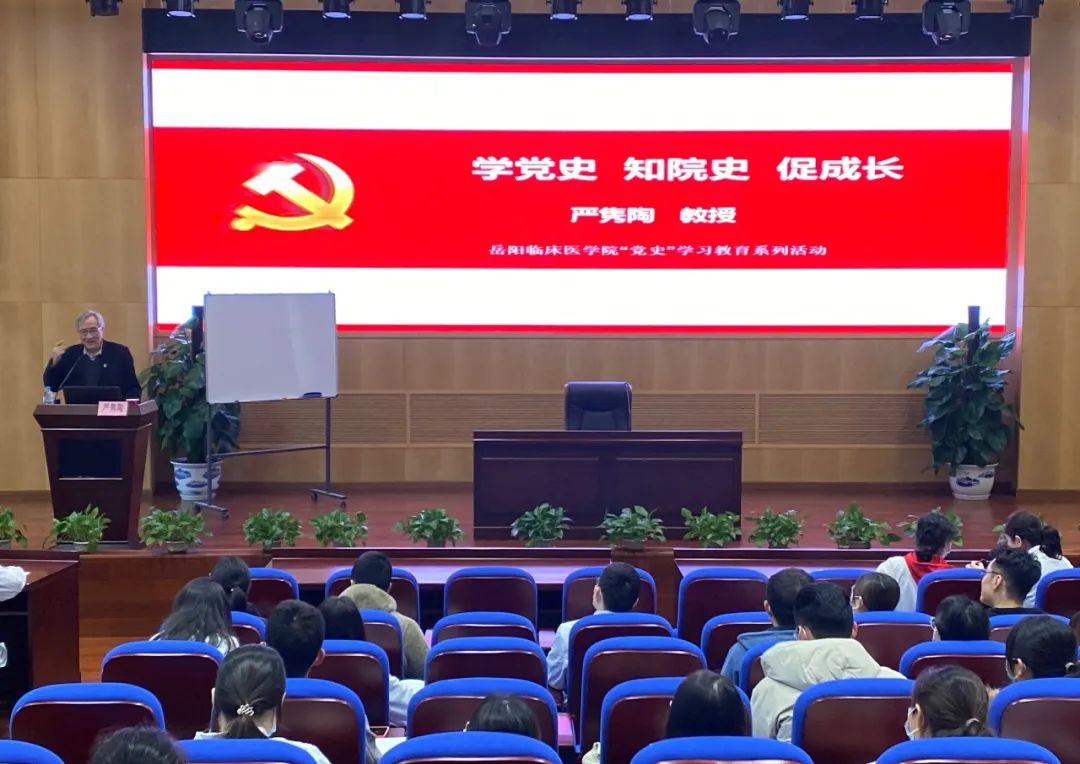岳阳临床医学院“中西合璧,德润杏林”导师团导师严隽陶教授为学院全体学生开展“认识我们身临其境的岳阳医院”主题党课。引导毕业生党员务必传承红色基因,为实现中医药的传承和发展、实现“两个一百年”奋斗目标而不懈努力,奉献自己的青春和智慧。