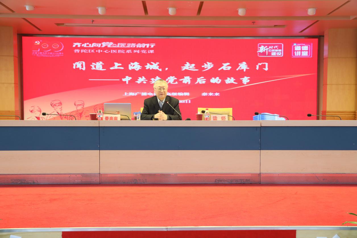 普陀临床医学院邀请导师团导师上海广播电视台高级编辑秦来来为全院毕业生开展以“闻道上海城,起步石库门一一中共建党前后的故事”为主题的专题党课,引导学生从党史中获得启发、汲取力量。组织学生参与党史知识竞赛,用党的思想伟力感召学生,引导学生爱国爱民、勇于创新、实学实干,肩负起时代重任。