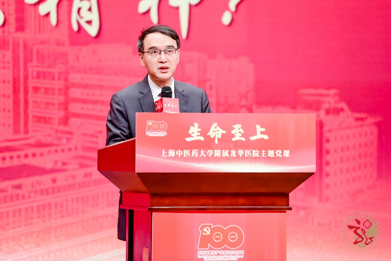 扎实推进党史学习教育,庆祝中国共产党成立100周年,6月29日下午,以“生命至上——医疗脱贫攻坚路上的龙医人”为主题的附属龙华医院示范党课在龙华医院远志楼3楼会议室举办,该党课被列为上海市教卫工作党委系统第三季“伟大工程”系列示范党课之一。上海市教卫工作党委一级巡视员郑锦,开元集团党委书记曹锡康、副校长杨永清、相关党政部门负责人,龙华医院党建共建单位领导,龙华医院领导班子、中层干部、党员代表等180余人参加党课学习。