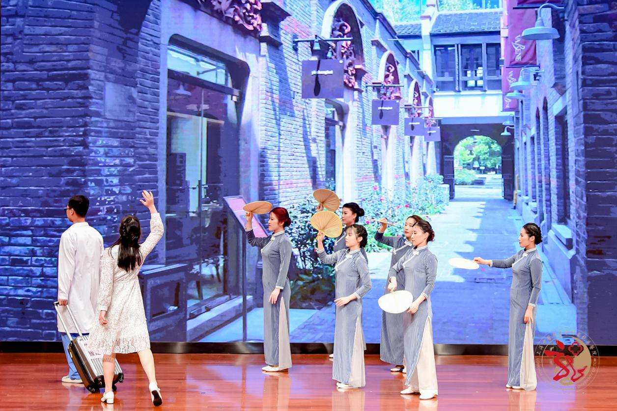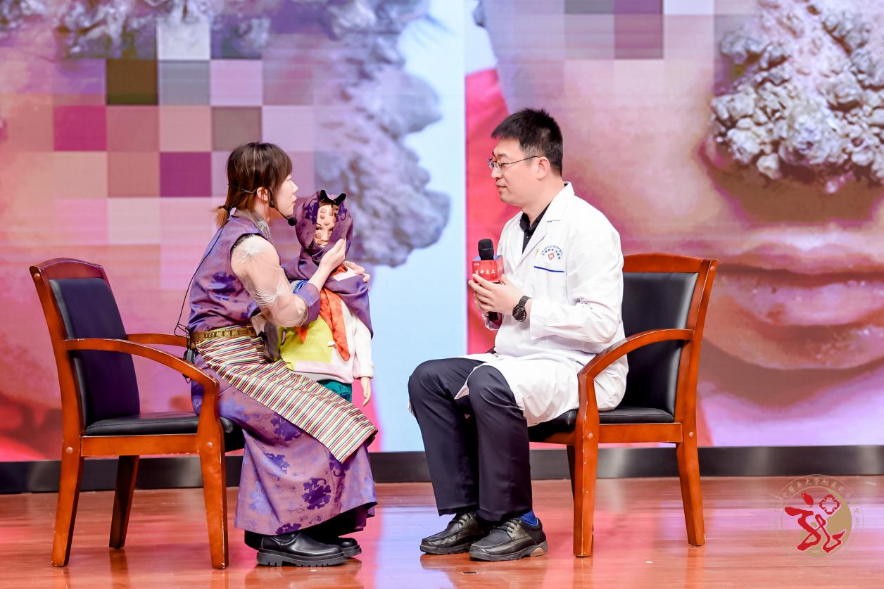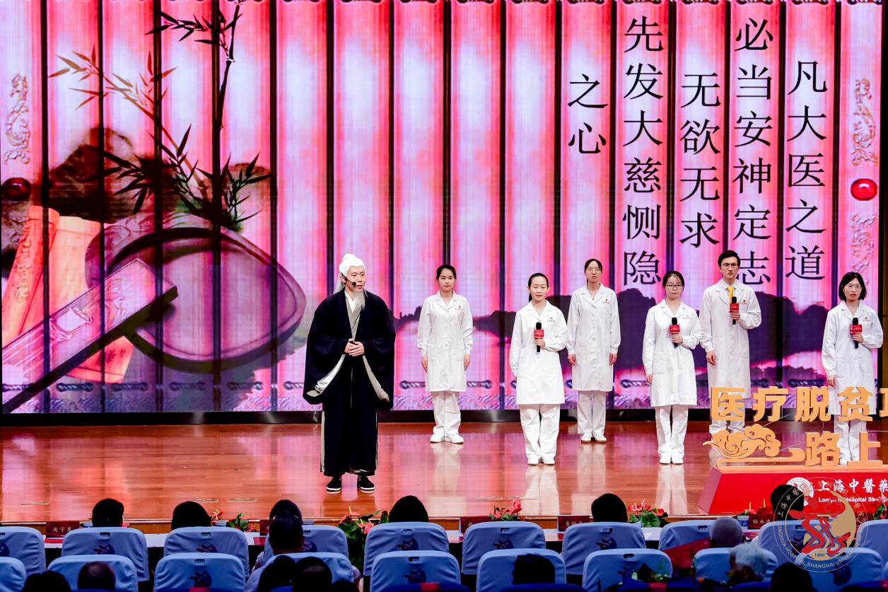 示范党课课程部分在舞蹈《晨光》中拉开帷幕,大家跟随着一批批援建医生代表跋涉的脚步,出发远征,共同见证龙医人在祖国最需要的地方奋斗的身影。在《援疆路上》的访谈环节,通过李和根、方赛峰、田雨、薛鸿浩四位援疆专家代表的分享,让大家重温援疆路上的艰辛和感动,他们用自己的实际行动,充分发挥中医药特色优势,为祖国脱贫攻坚战打下漂亮一仗。“安吉拉,安吉拉,快救救我的孩子吧!”一位西藏妈妈抱着她的孩子来到舞台,由援藏医生代表李晓睿展演的情景剧《点亮》再现了他在西藏地区通过中医技术点亮了一名身患复杂性皮肤病藏族女孩幼小的心灵,也点亮了上海与西藏人民间友谊之灯的故事;通过《我们都有医师资格证啦》情景再现,跟随援藏医生代表顾超一起回顾援建者授人以渔,通过开展教育培训,帮助当地医务工作者获得医师资格证的故事;通过《青春援建 一脉相承》的快板展示,援滇青年医生代表朱雯与他的小伙伴们展现了龙医青年人的青春与梦想;通过《杏林春暖 生命至上》古今对话的方式,展现了青年中医学子的责任和担当,他们铭记经典,誓把“大医精诚”精神发扬光大,奋斗新时代。