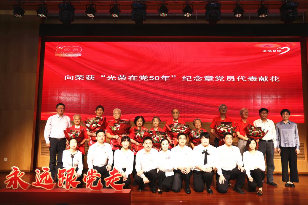 岳阳中西医结合医院党委书记郑莉宣读“光荣在党50年”纪念章获得者名单。老一辈党员同志用一生的精力和毕生的心血,倾力倾情,默默无闻地为党工作,为病患解忧,作出了卓越贡献,书写了奋斗的篇章。年轻一代的党员同志们向老党员代表献花的同时,接过的是老党员们忠诚担当、为民务实的“接力棒”。