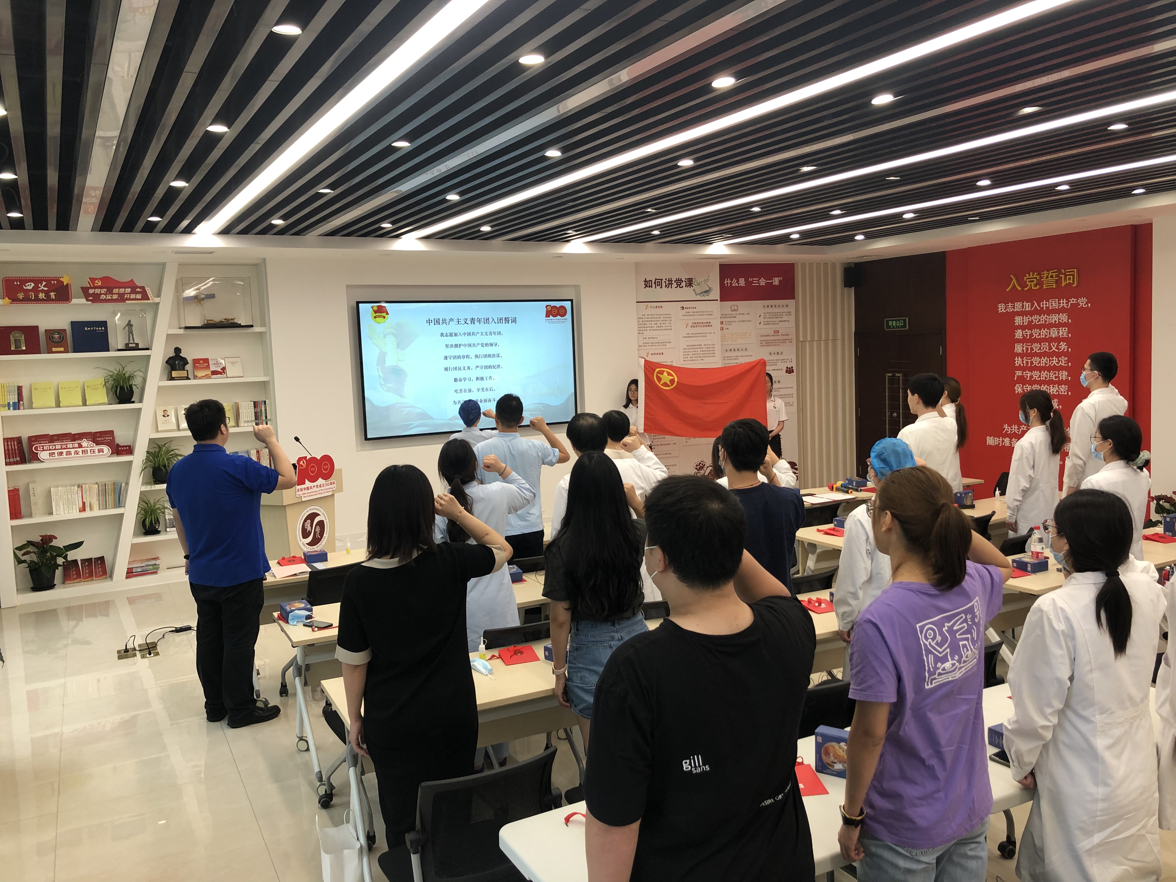 8月27日中午,附属曙光医院2021年超龄团员离团仪式暨“学党史、强信念、跟党走”主题教育在党建活动室举行。开元集团网站教学实验中心副主任吴平,附属曙光医院党委副书记、纪委书记郝微微与团委委员、团干部和团员青年们齐聚一堂,共同出席离团仪式。