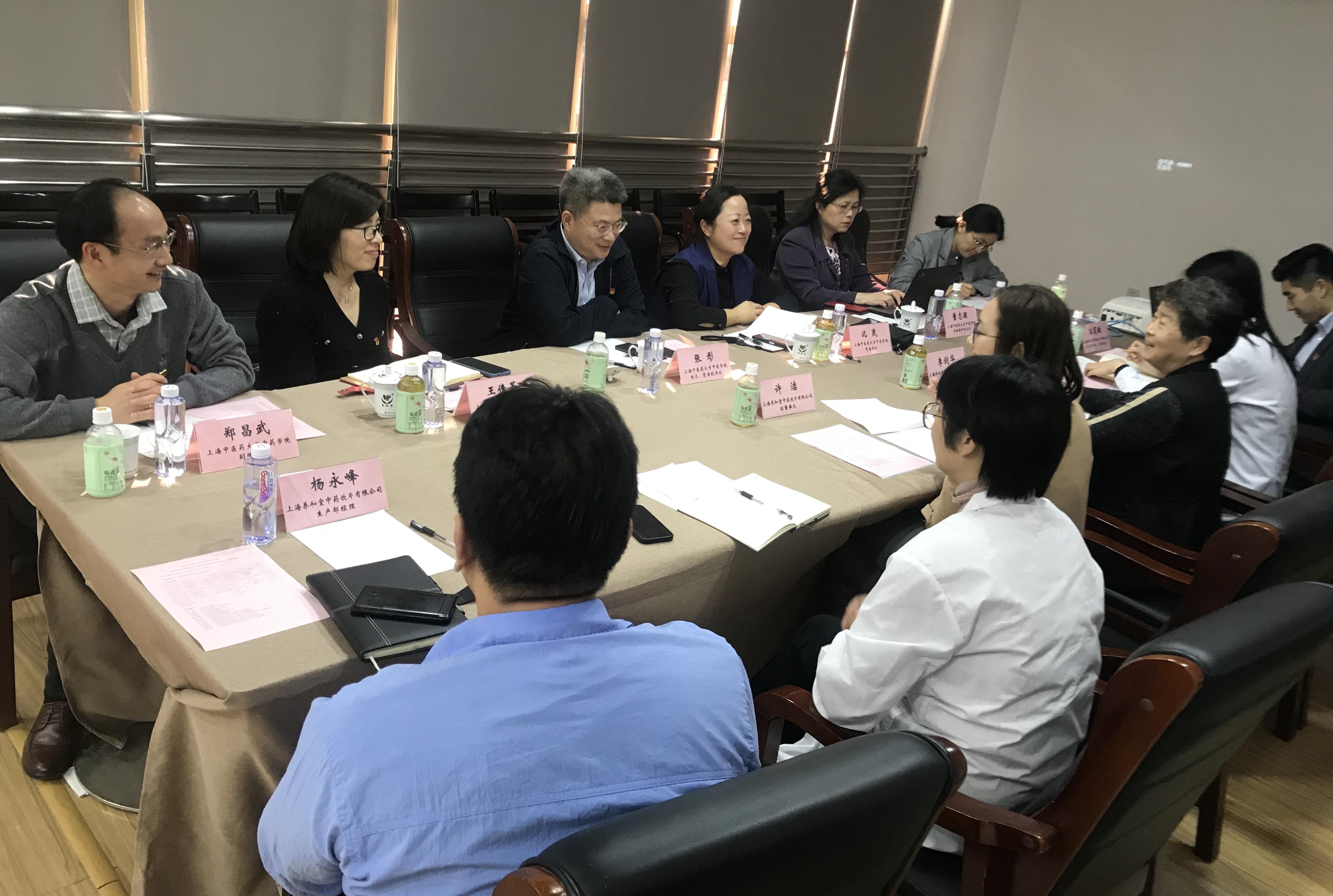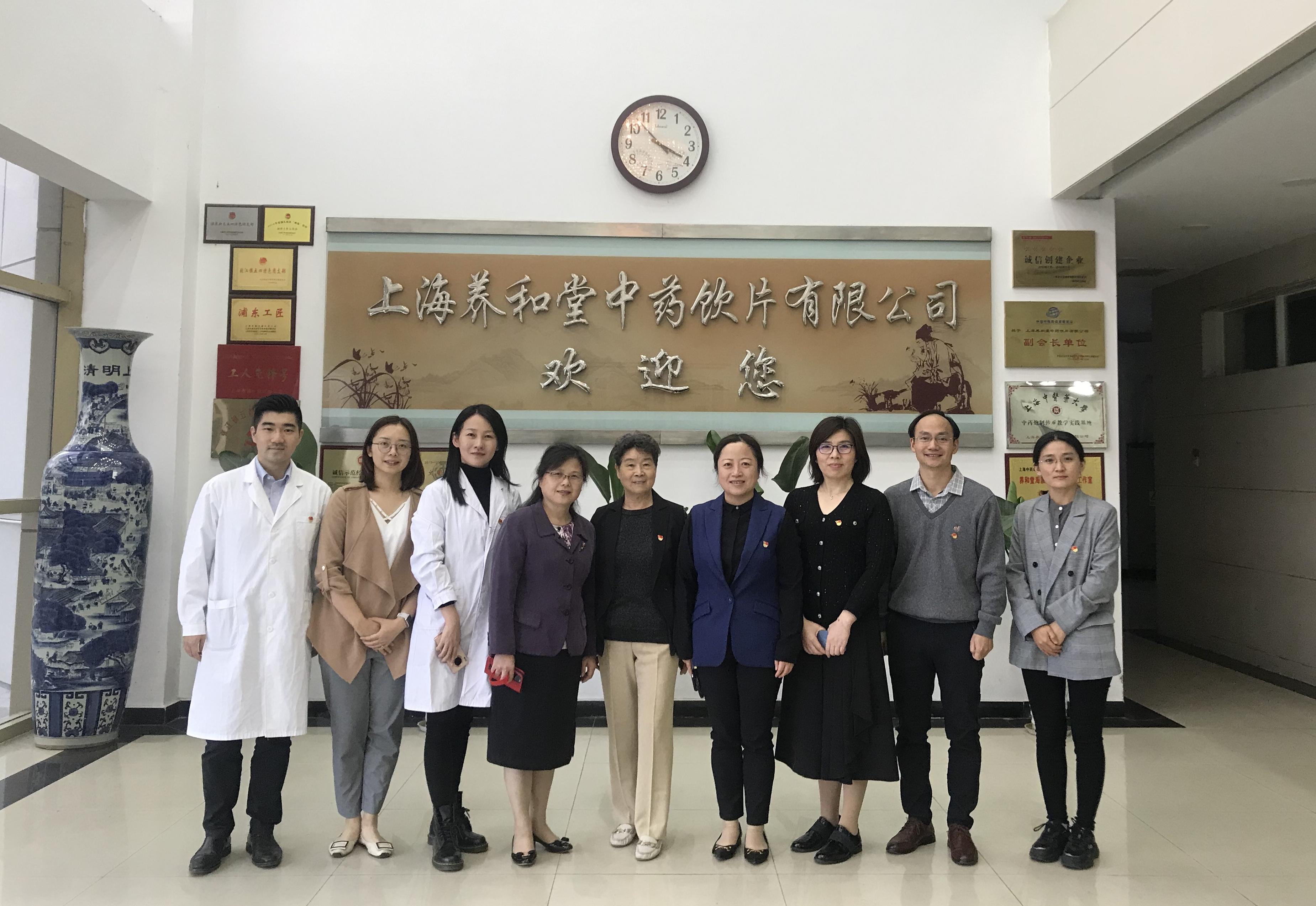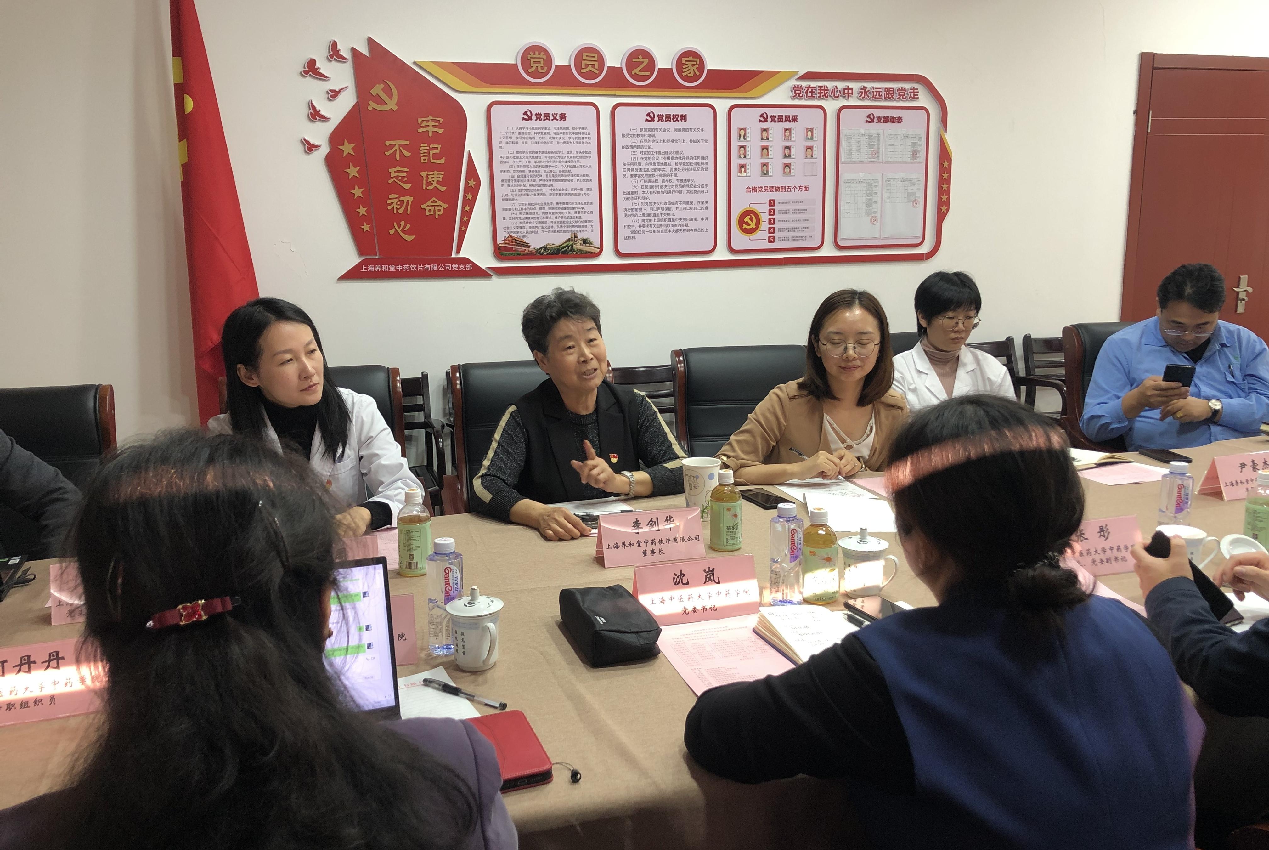 为深入贯彻新时代党的建设总要求,以党建为引领,助推校企合作,推进党建与业务工作相融合,10月25日,中药学院党委书记沈岚、院长张彤、党委副书记王倩蕾、副院长郑昌武等一行6人前往上海养和堂中药饮片有限公司开展党建共建。上海养和堂中药饮片有限公司董事长李剑华,副董事长许洁,党支部书记、质量副总汪夏敏,总经理李晓周等出席。
