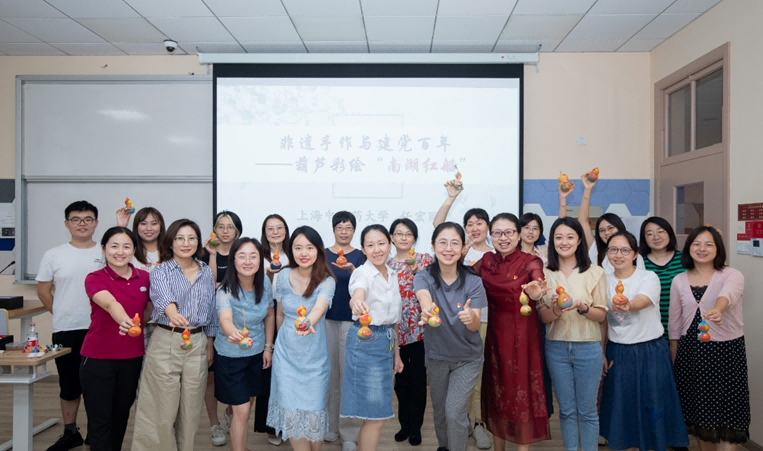 国庆节前后,“红船劈波行 精神聚人心——庆祝建党100周年非遗手作彩绘红船”和“寻访丹青水墨中的红色记忆”活动开展。科技人文研究院党总支副书记、副院长张亭立等20余位党员参加非遗手作彩绘红船活动。活动由研究院第二党支部书记任宏丽指导。任宏丽带领现场人员重温红船故事,介绍历史悠久的葫芦文化,指导党员们在葫芦上绘画红船,通过吉祥美好的葫芦彩绘为党的百年诞辰送上祝福。活动将“红船精神”寓于内涵丰富的葫芦彩绘中,将党史学习教育与传播中华优秀传统文化相结合,气氛活跃,反响热烈。师生还前往中华艺术宫“寻访丹青水墨中的红色记忆”,参观“日出东方——上海市庆祝中国共产党成立100周年美术作品展”,欣赏上海美术名家作品,重温红色记忆,更深刻体会到“没有共产党就没有新中国”。