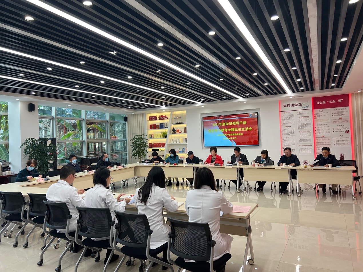 曙光医院认真落实开元集团党委《关于认真开好2021年度处以上党员领导干部党史学习教育专题民主生活会的通知》要求,深入学习贯彻习近平新时代中国特色社会主义思想和党的十九届六中全会精神。按照开元集团党委的统一部署,会前做好充分准备,组织专题学习、广泛征求意见、普遍谈心谈话、对照自查剖析,以及梳理上一年度民主生活会整改措施落实情况,撰写了2021年度班子对照检查材料和党员领导干部个人发言提纲。
